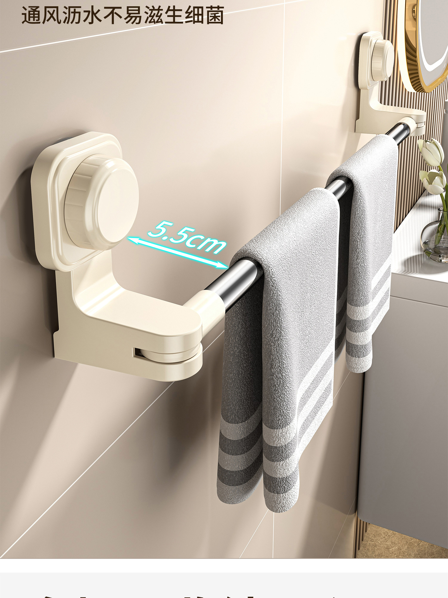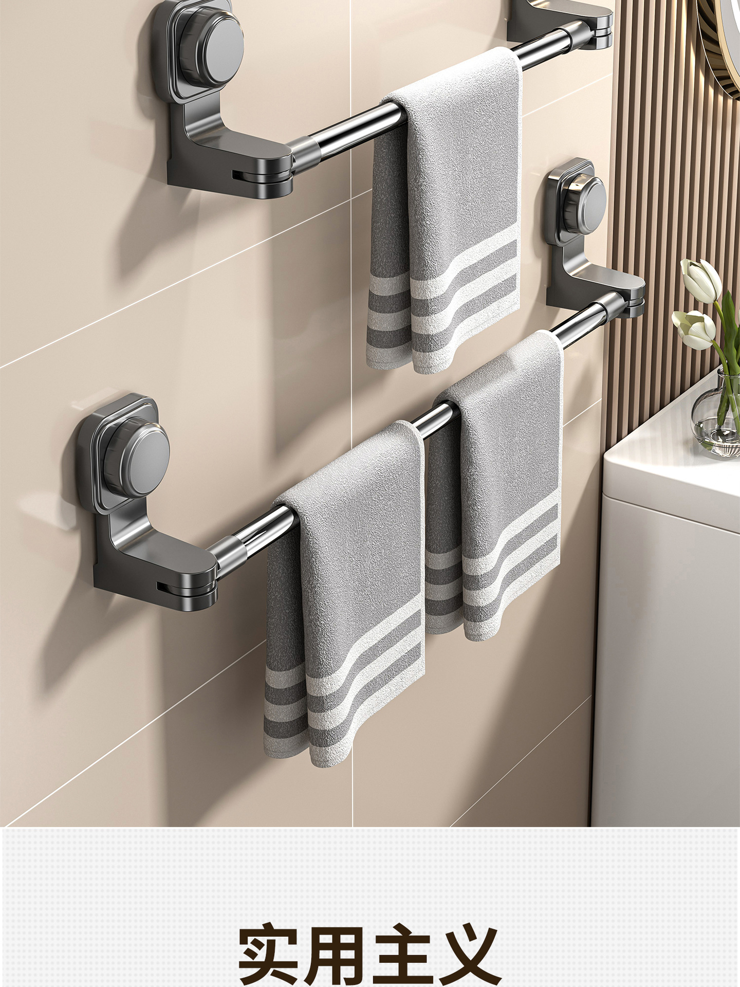 吸盤タオル掛けトイレ穴なし浴室タオル棒バスタオル壁掛け棚収納ハンガー単双棒