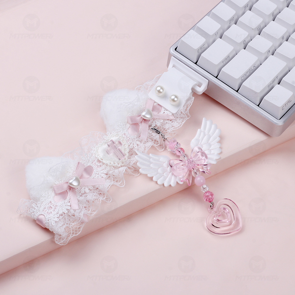wooting蕾丝键盘飘带手工绸带猫耳朵装饰带键盘DIY改装配饰美加狮