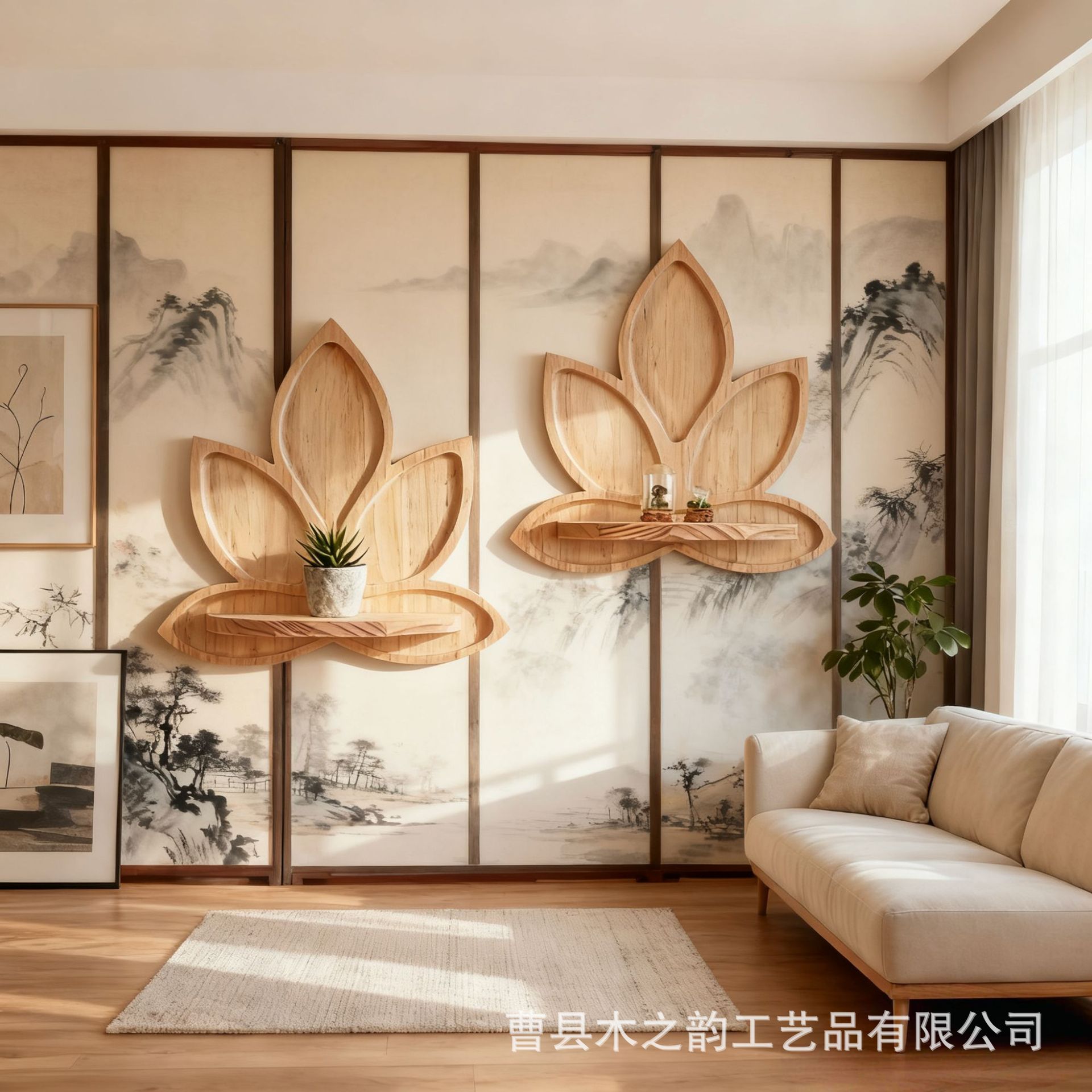实木莲花隔板置物架壁挂式墙面装饰架木质家用墙上香薰蜡烛摆放架