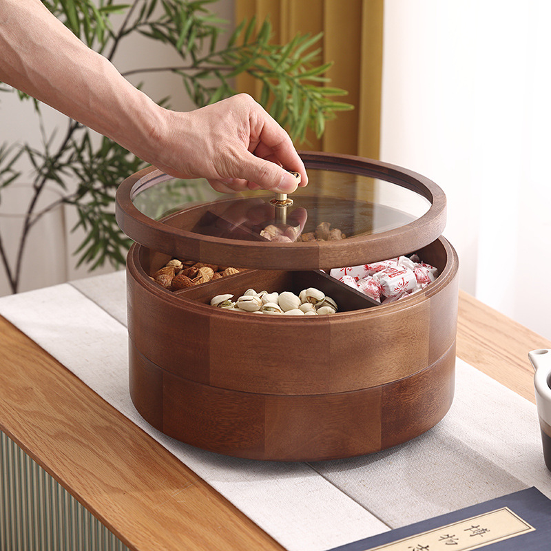 新年の実木ドライフルーツ箱客間茶何木のキャンディー箱新中国式家庭用二重回転スナック収納箱