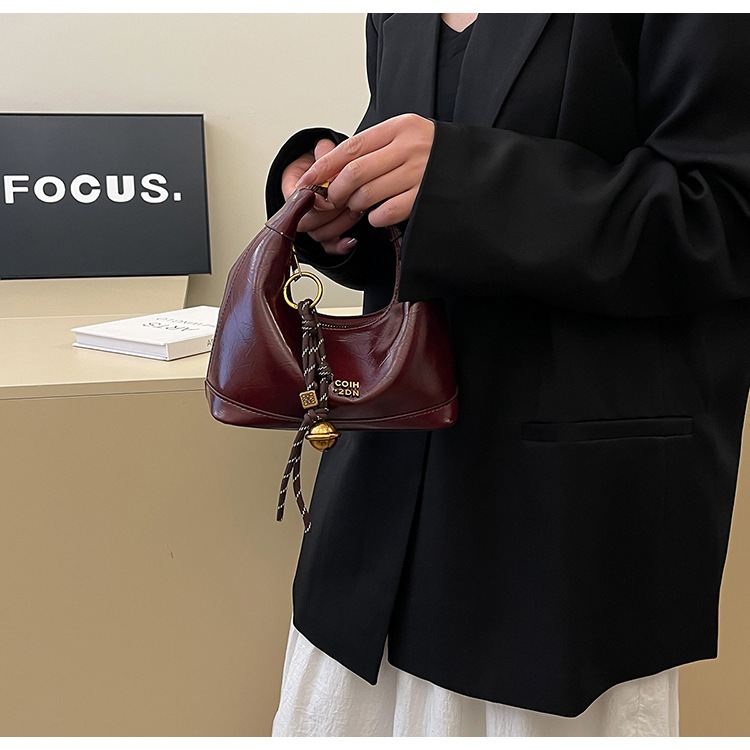 包包复古油蜡皮亮面小包包女秋冬百搭斜挎包高级感通勤手拎饺子包