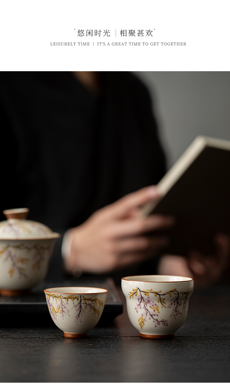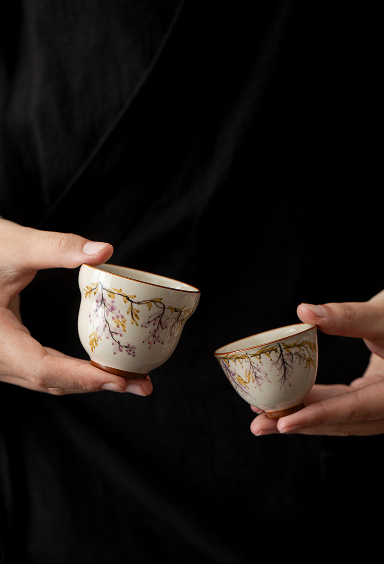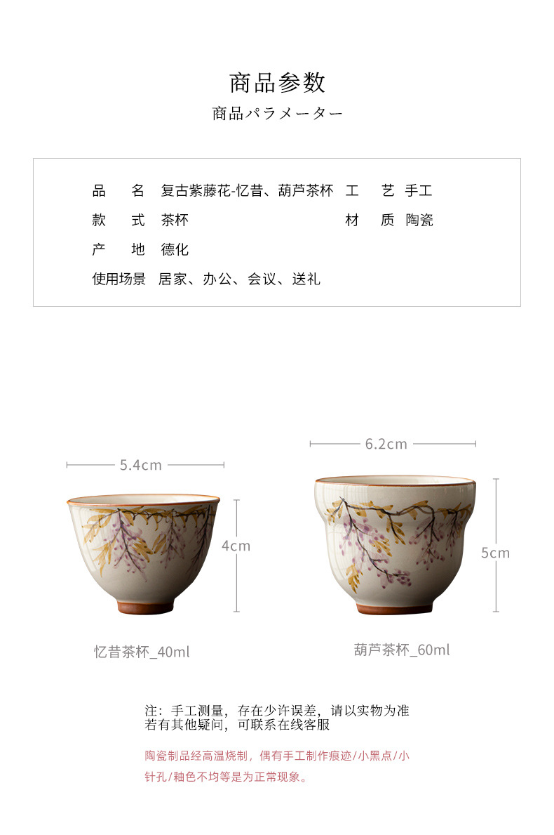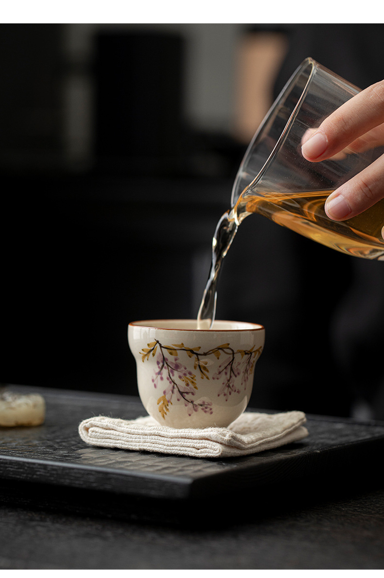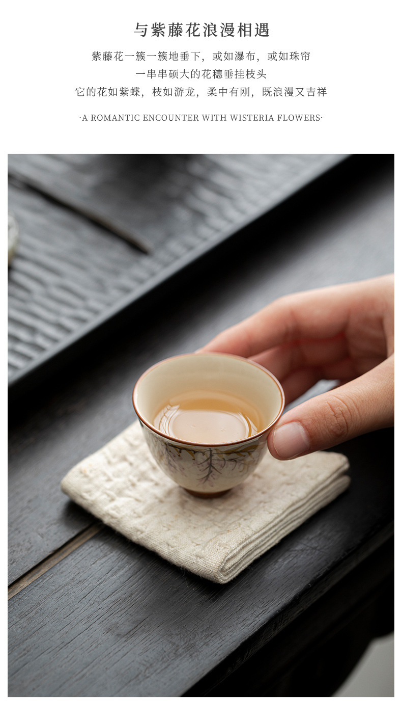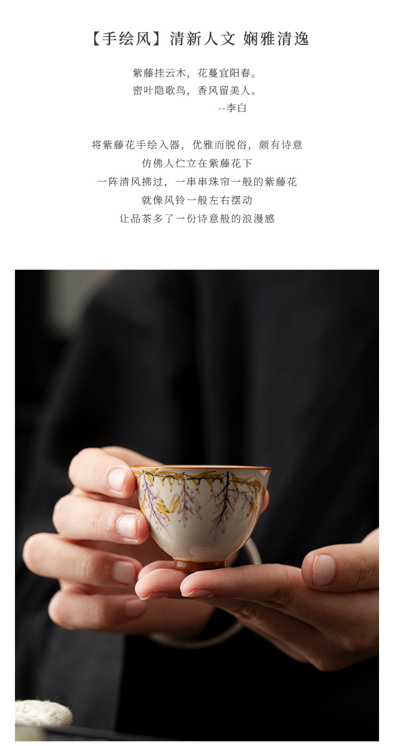 手描き紫藤花模造古茶杯品茗杯シングルカップ家庭用お茶レトロ陶磁器工夫茶具主人杯女