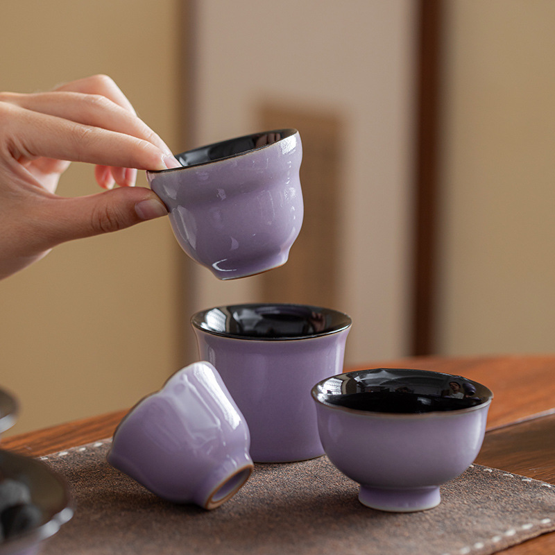 丁香紫主人杯单杯陶瓷复古家用茶室待客喝茶杯个人专用品茗杯