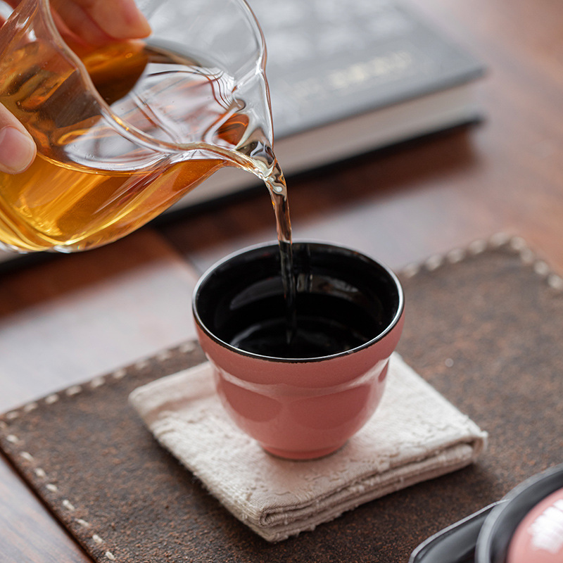 珊瑚粉大号茶杯陶瓷简约家用女士喝茶单杯品茗杯功夫茶主人杯