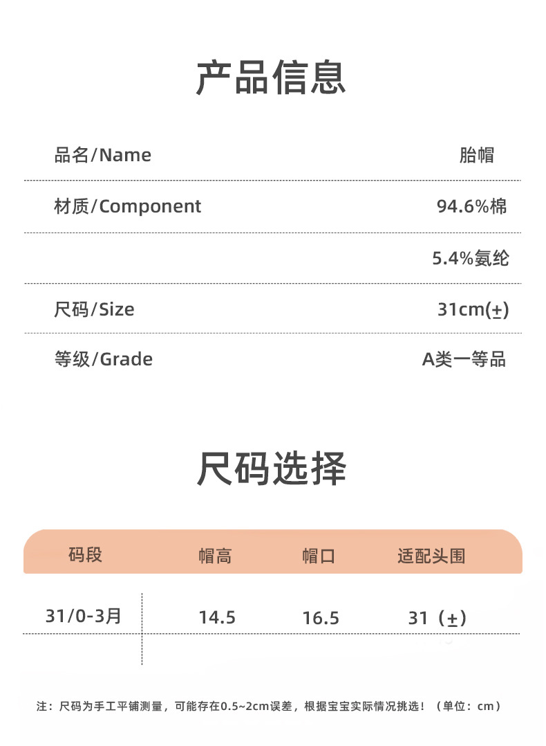 新生儿月子帽胎帽a类棉透气宝宝外出帽子大弹力卡通可爱婴儿胎帽