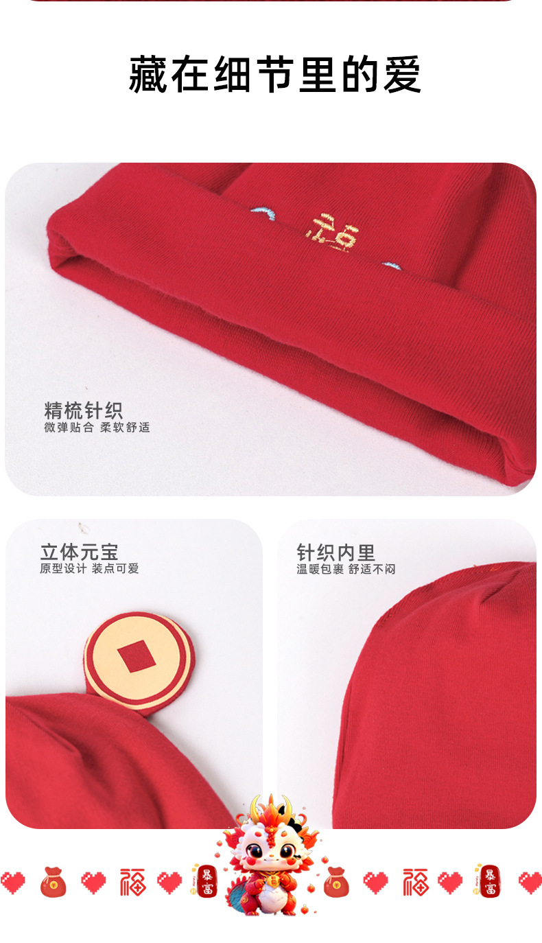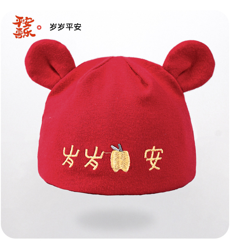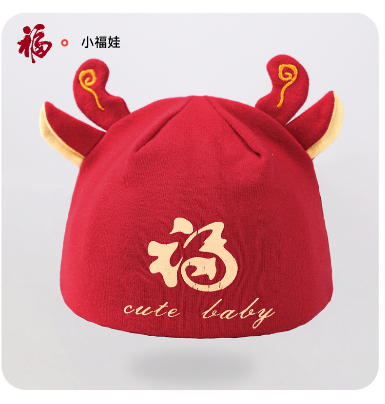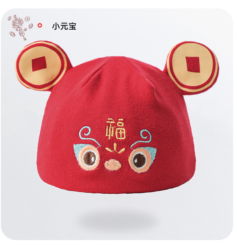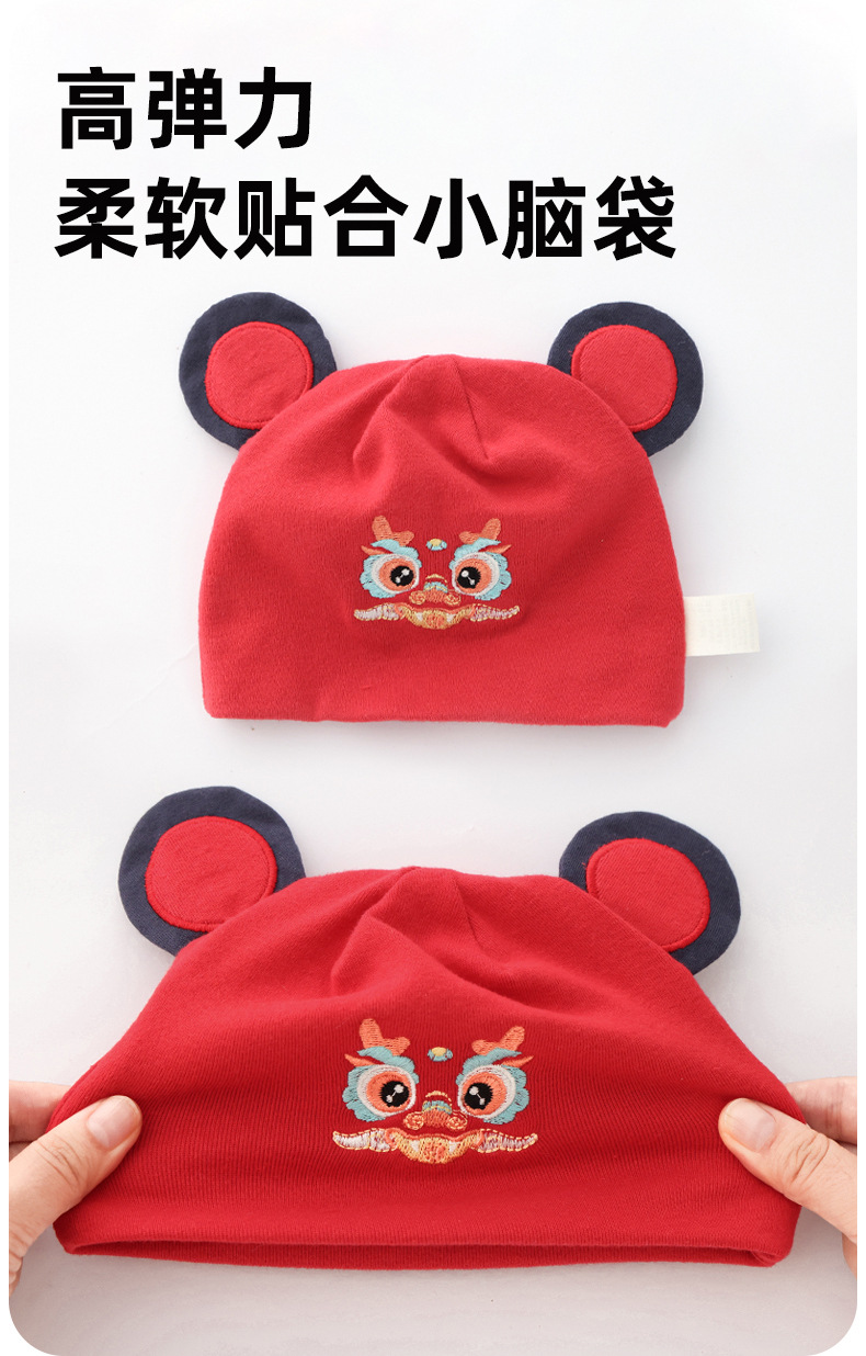 お祝い大紅新生児帽子赤ちゃん二重保護ベビードア胎帽赤ちゃん満月胎帽赤ちゃん新年帽