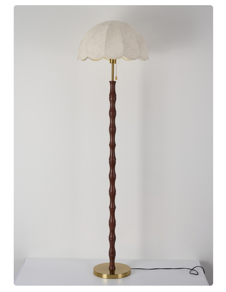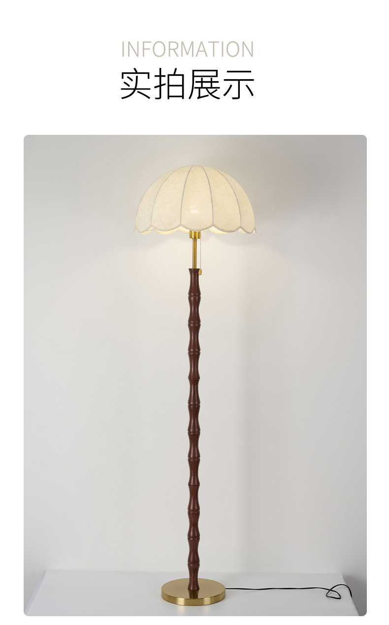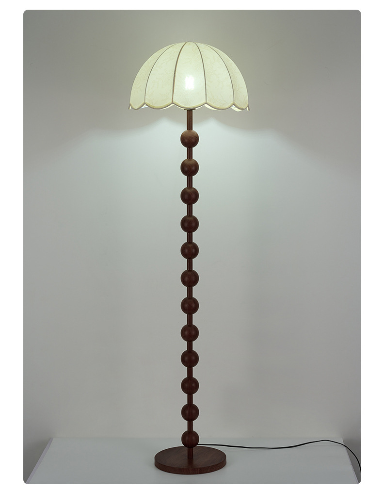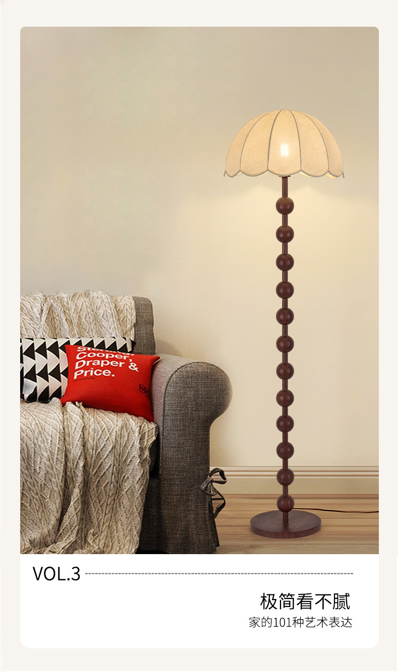 アメリカンレトロスタイルフロアランプウォールナットカラーファブリックソファランプアンティークスタイル無垢材雰囲気垂直ランプ