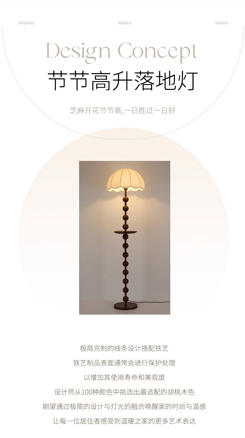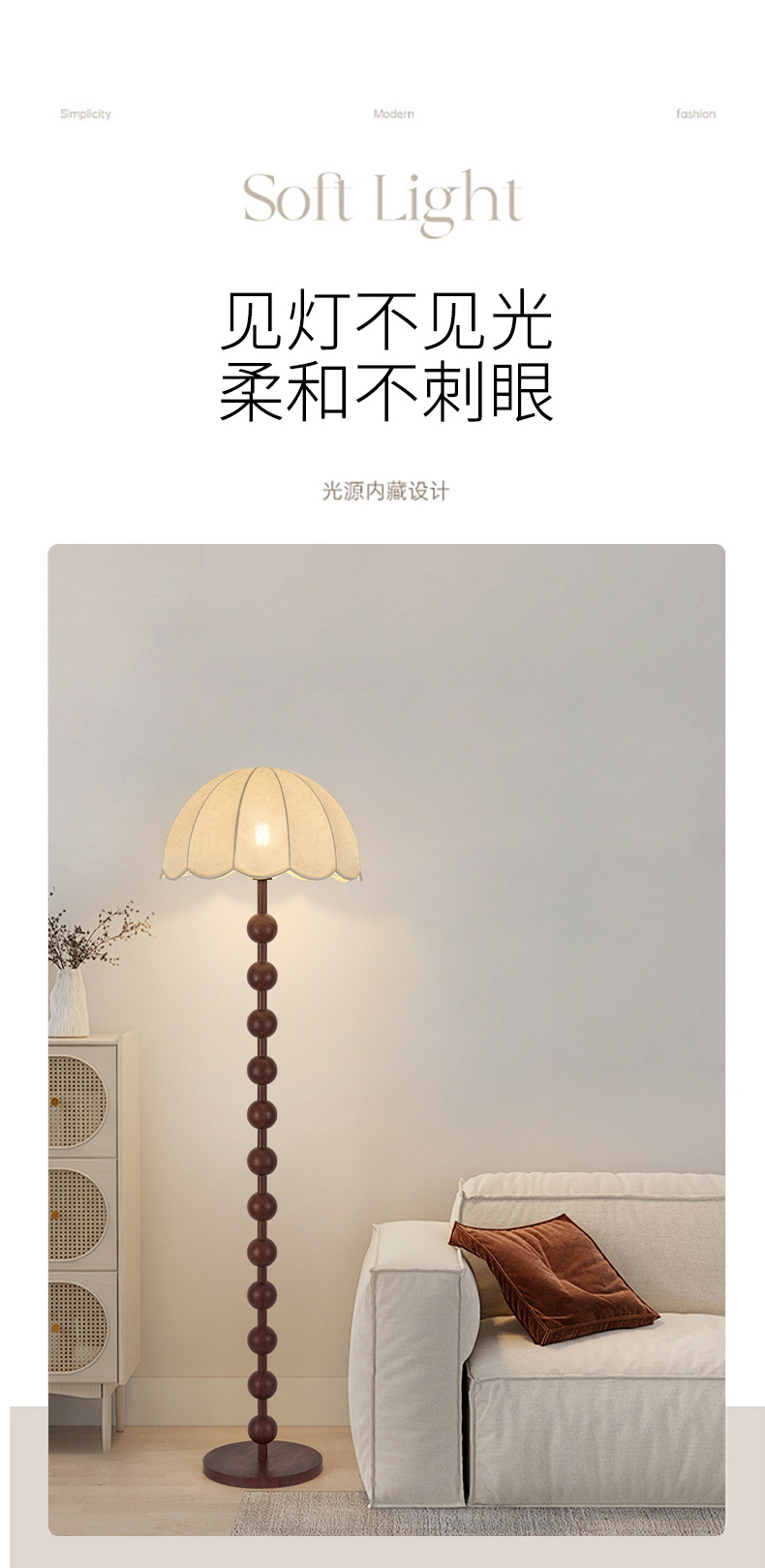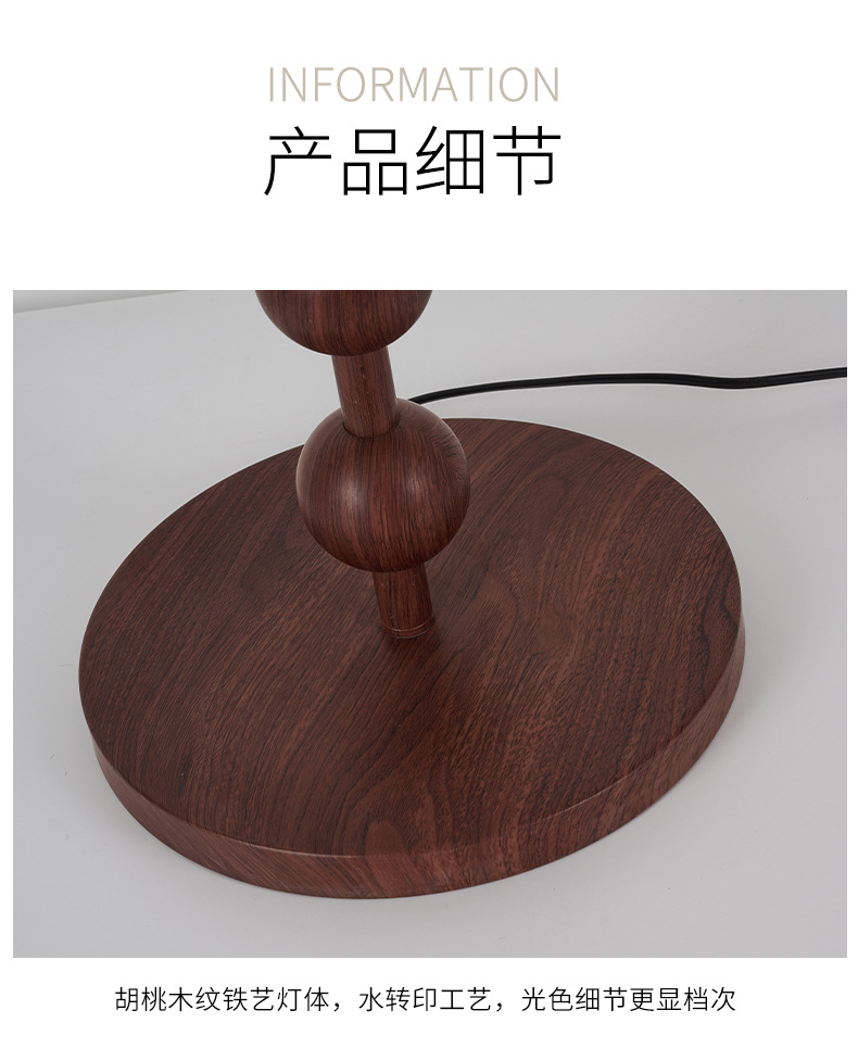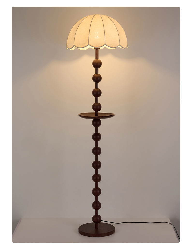 アメリカンレトロスタイルフロアランプウォールナットカラーファブリックソファランプアンティークスタイル無垢材雰囲気垂直ランプ
