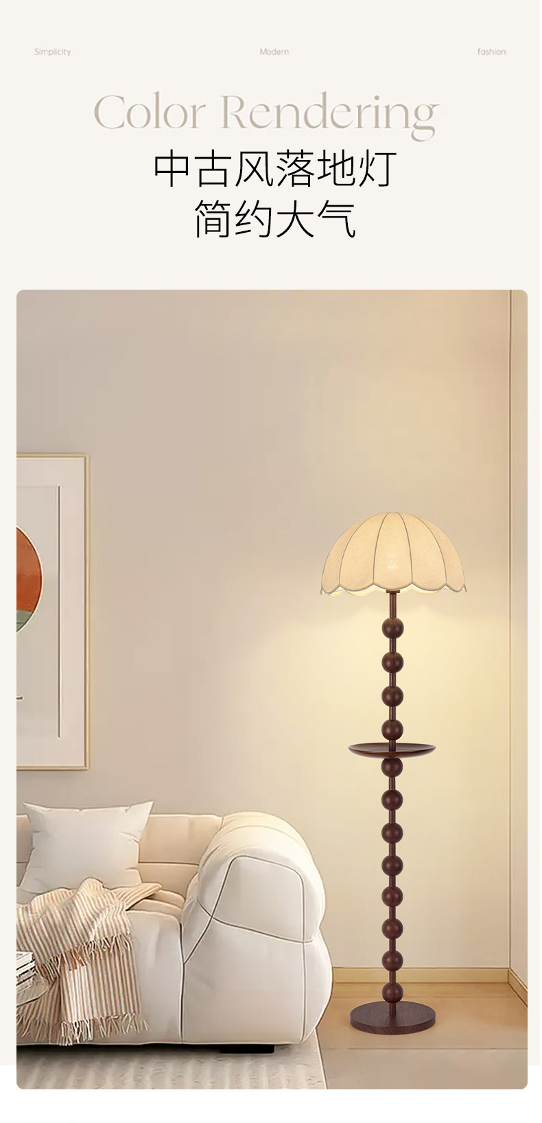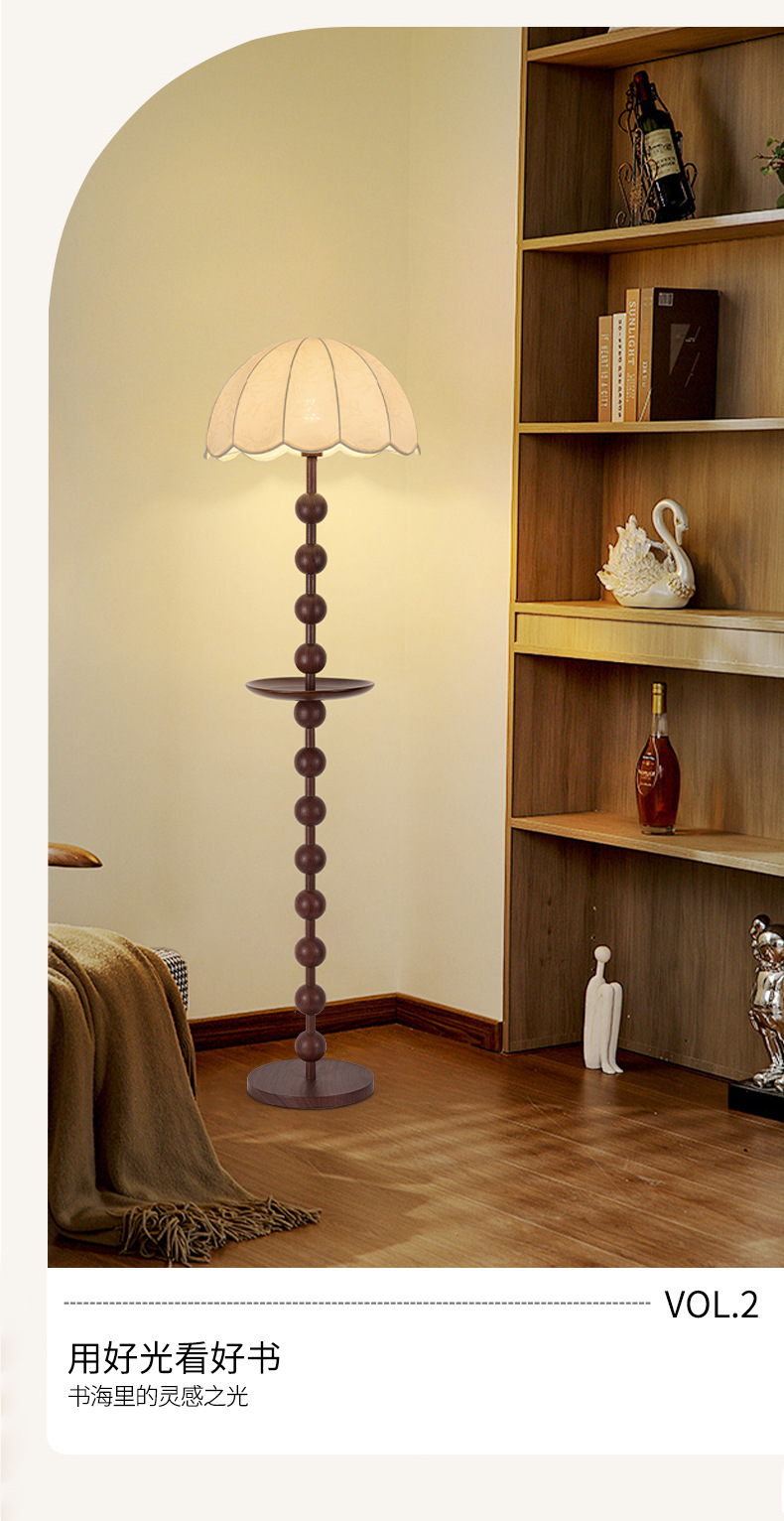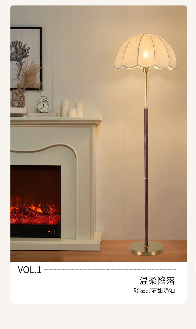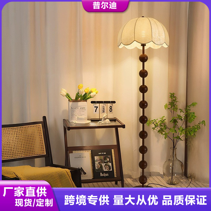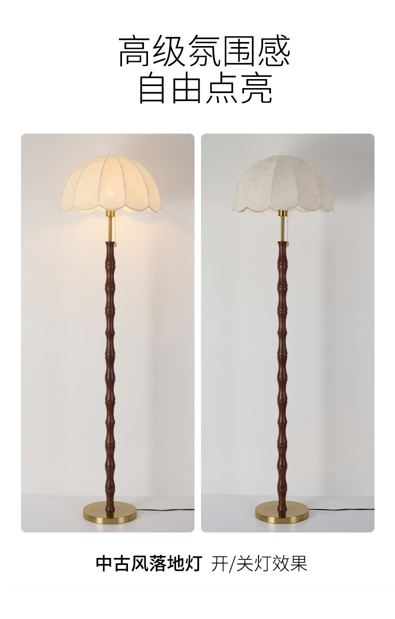 中古实木客厅落地灯法式复古沙发旁边高级感美式卧室装饰氛围台灯