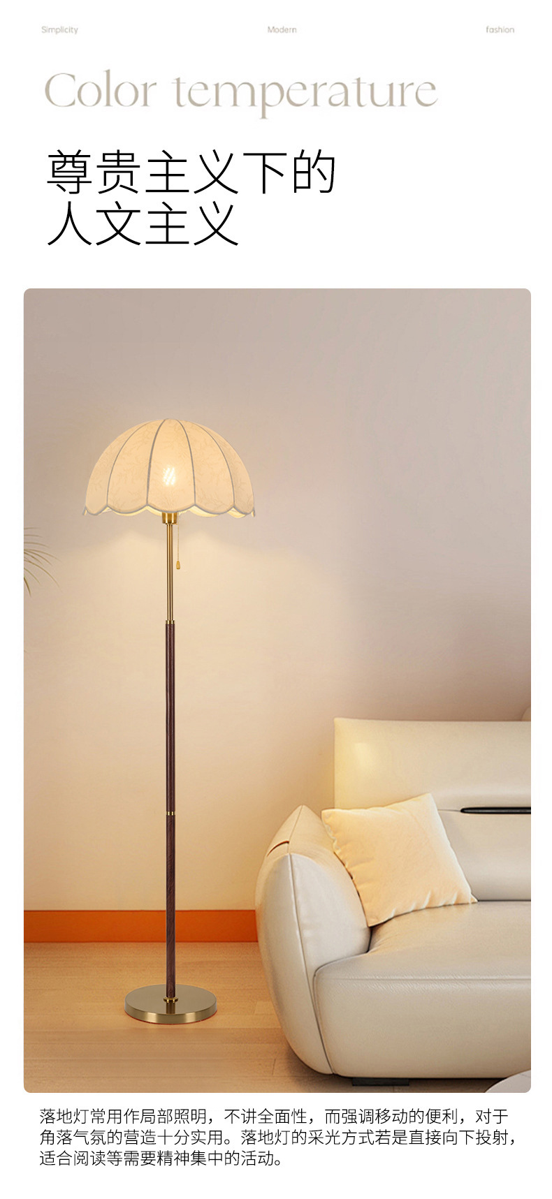 リビングルーム用フロアランプ、高見えする中世のベッドルームソファ、床から天井までの雰囲気ランプ、ハイエンドのレトロな垂直中山ランプ