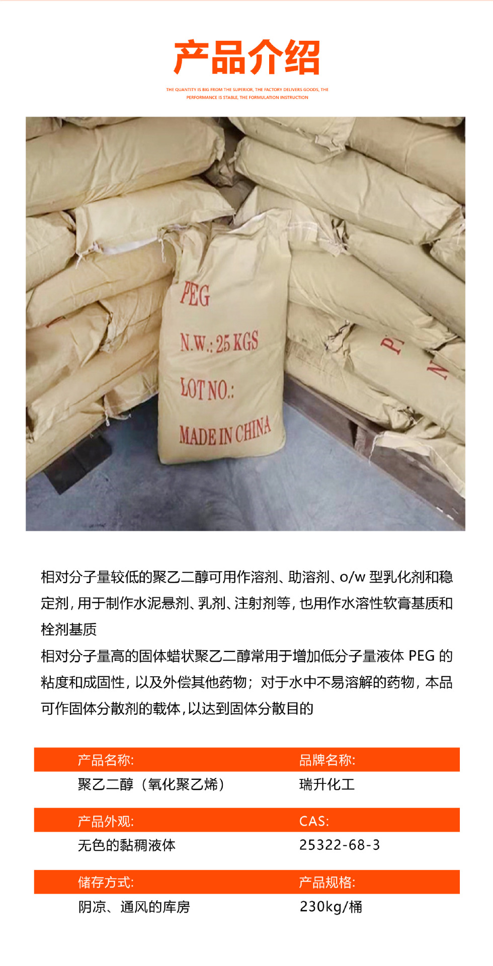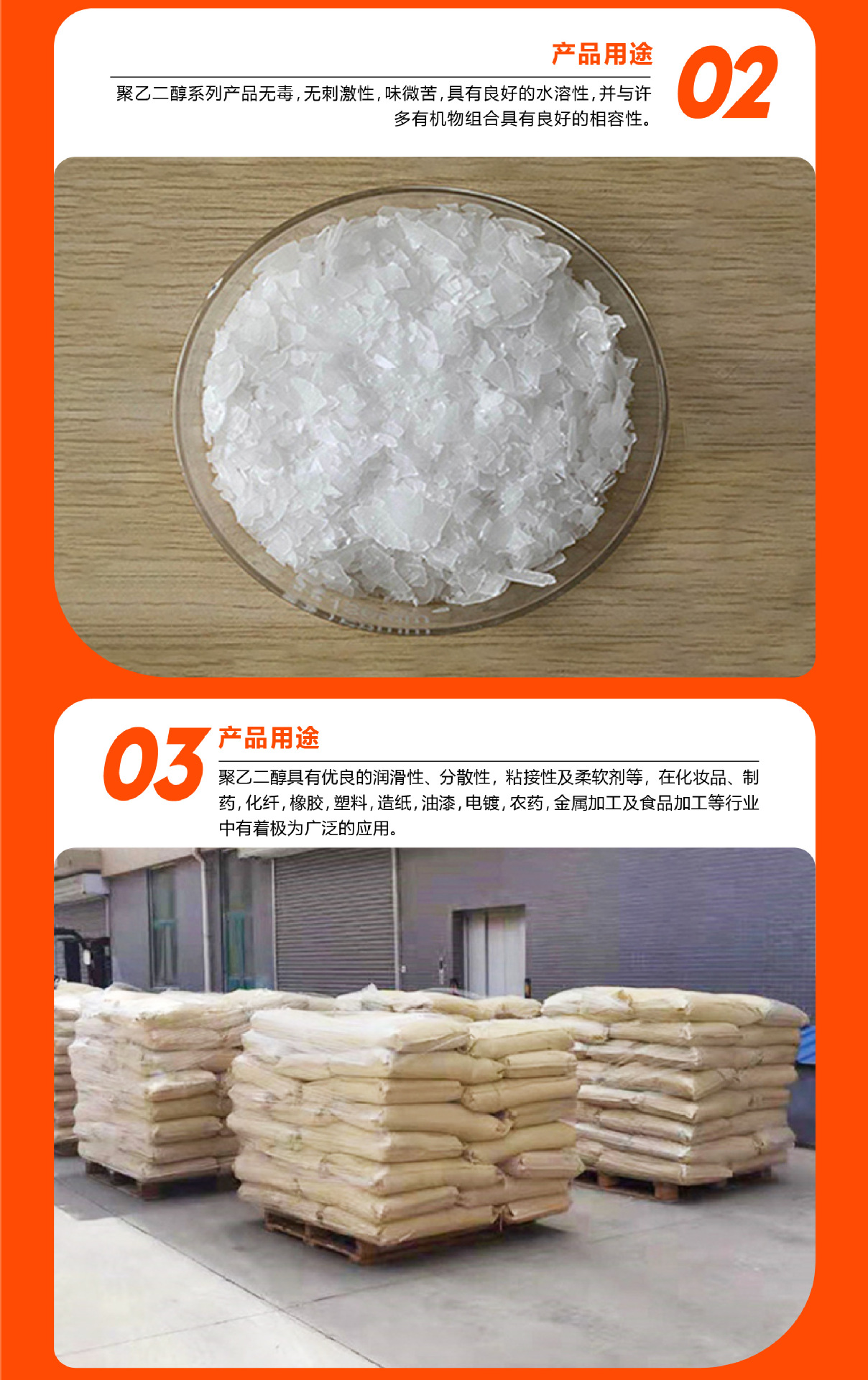 ポリエチレン グリコール シリーズ PEG2000 粉末/フレーク 潤滑剤および表面活性剤 工業用グレードのポリエチレン グリコール