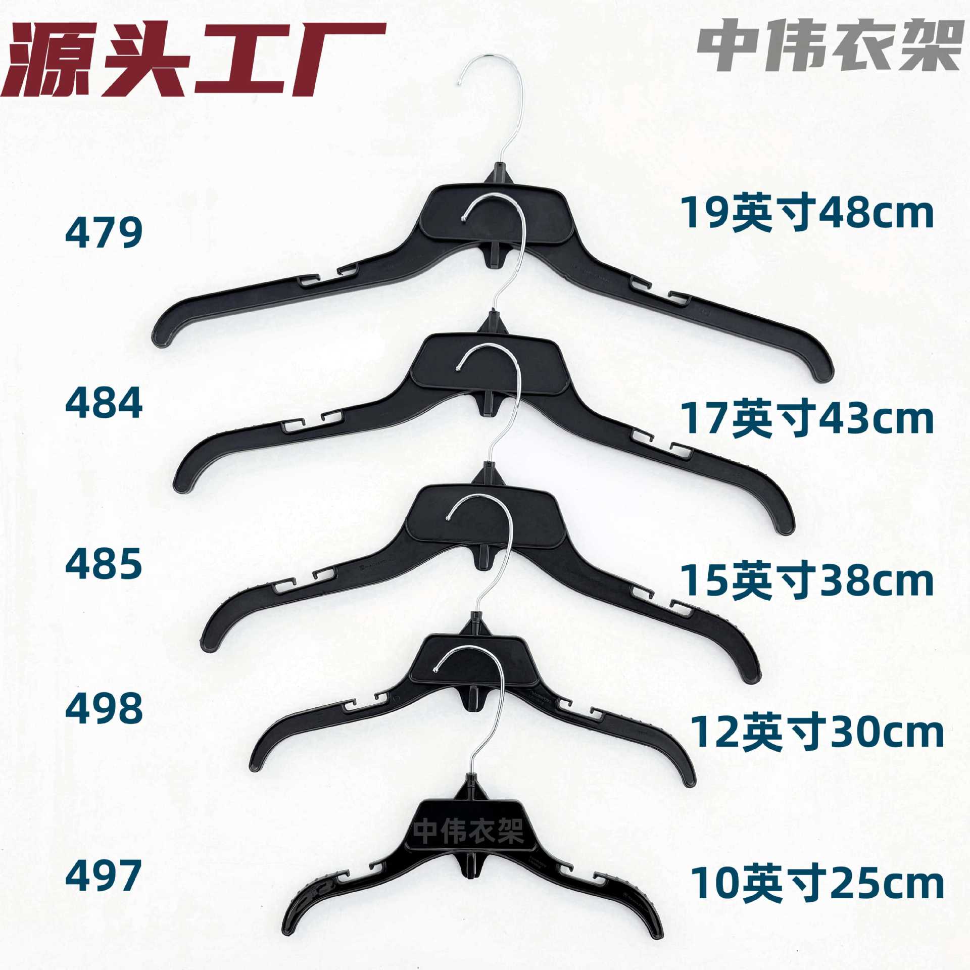 現物供給497/498/485/484/479ハンガー黒色プラスチック展示滑り止め児童服/成人服掛け