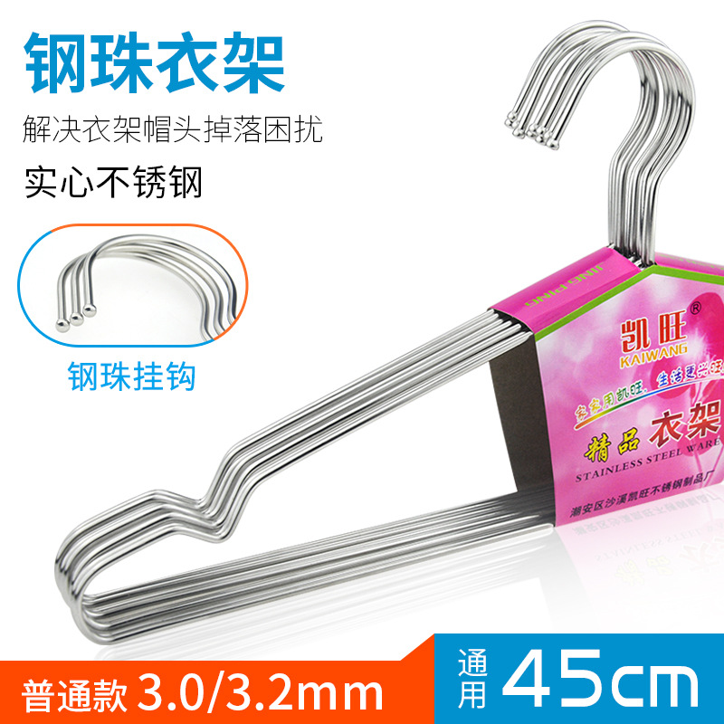 凯旺新款不锈钢钢珠衣架45cm实心衣架衣服撑儿童衣架晾晒衣架