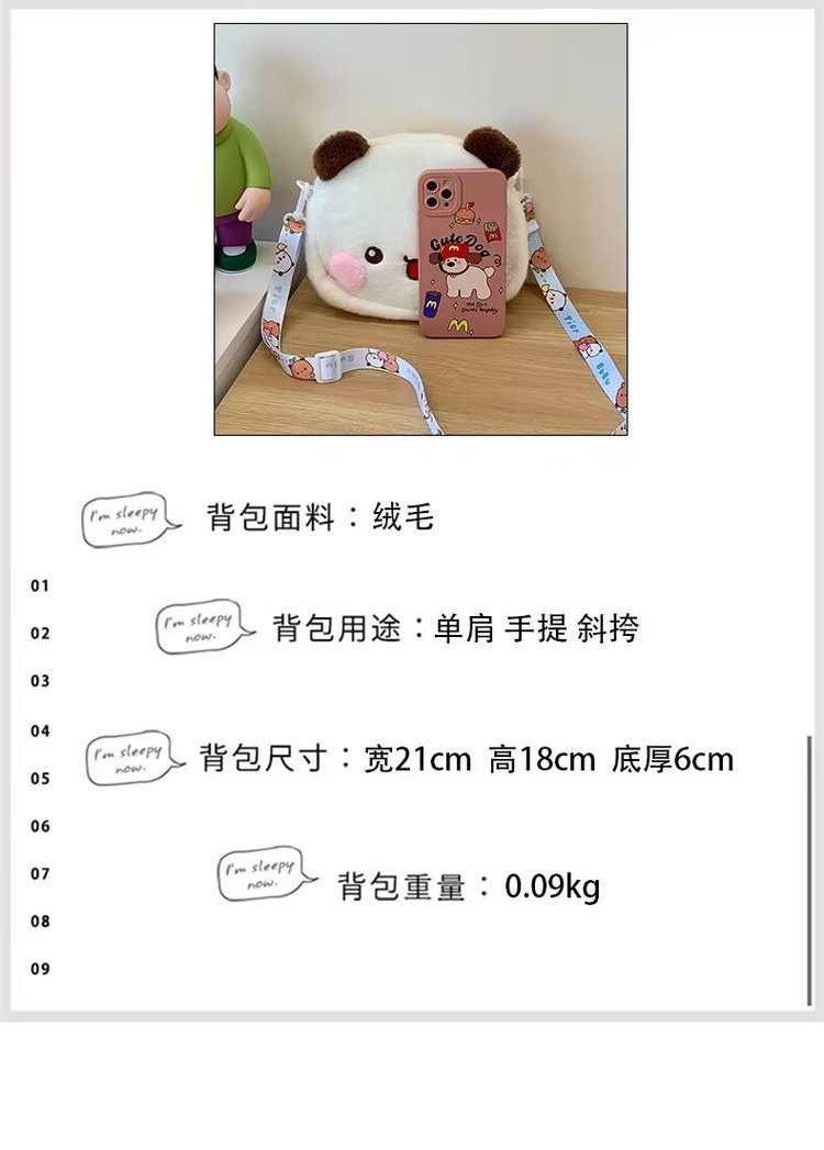 外贸包日系卡通狗包包手提单肩两用学生甜美大容量毛绒抓机玩偶包