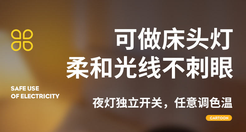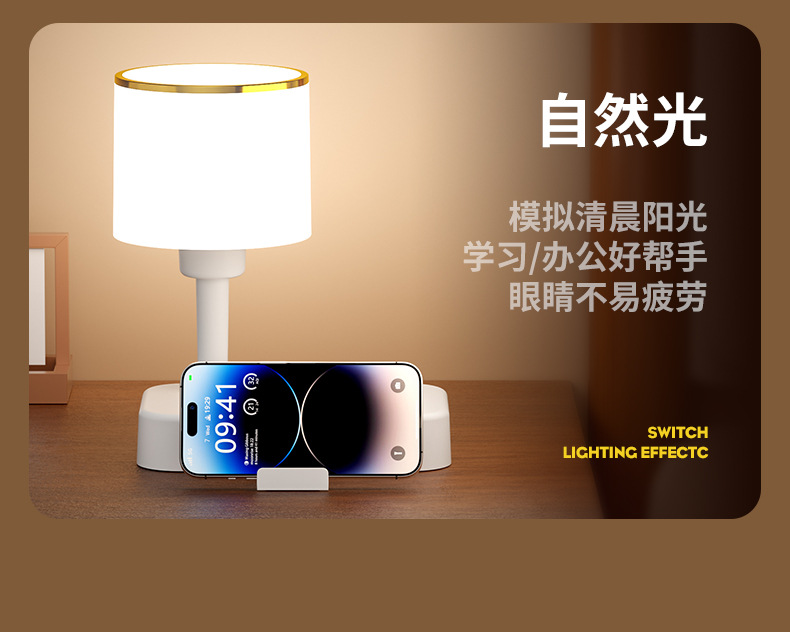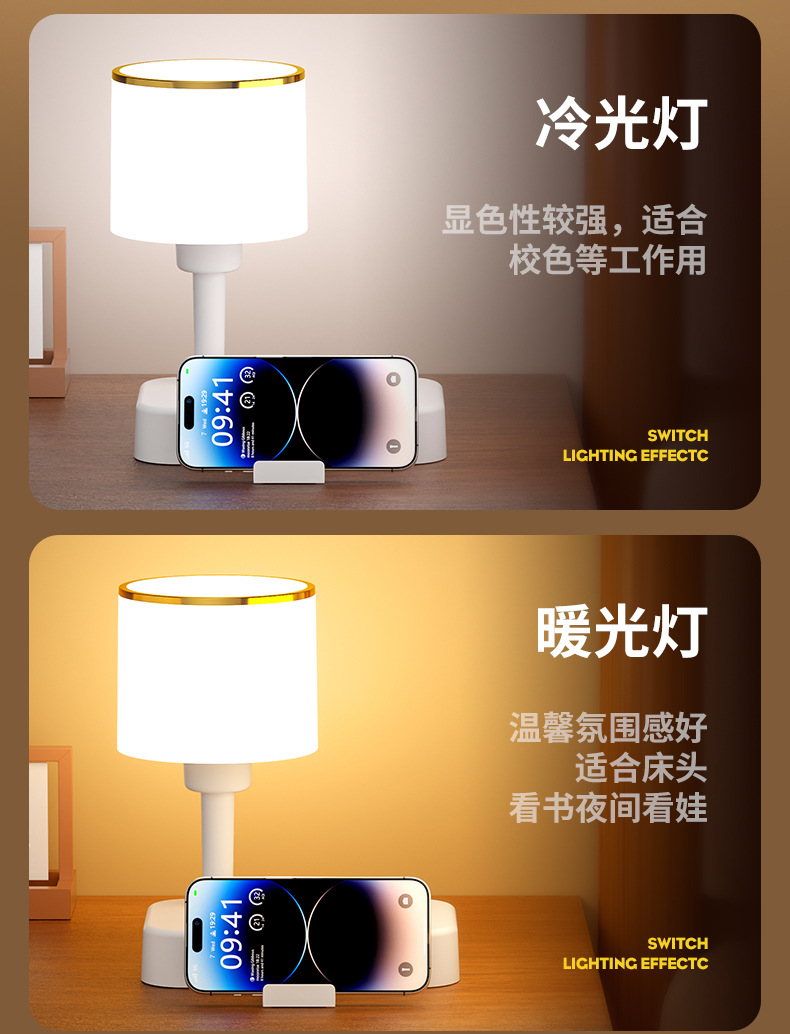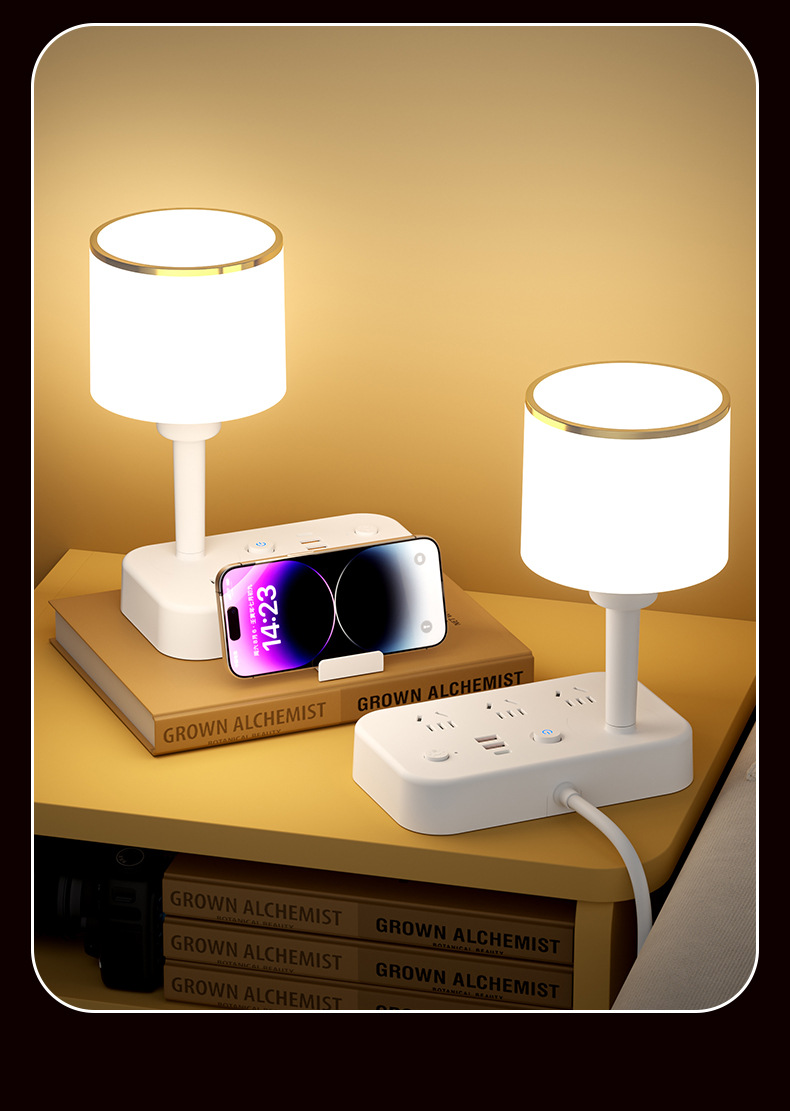 多機能電気スタンドコンセント一体式アイベッドヘッドランプ多段階冷暖光家庭用寝室ランプ