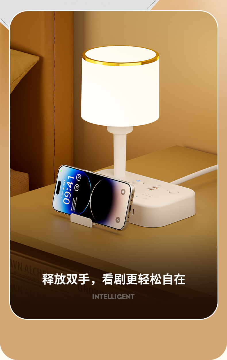 スマート音声リモコンはベッドの頭の色を調整できる多機能電気スタンドのコンセントを操作して、携帯電話のスタンドにUSBコネクタを持ってきます。