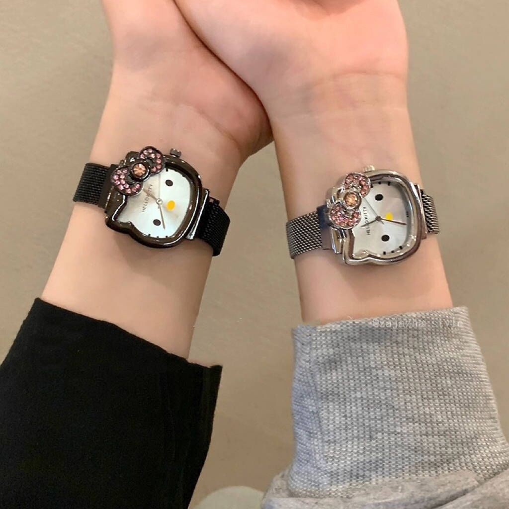 甘いクールな漫画のkittyの猫の腕時計はダイヤモンドの蝶結びのブレスレットの女性のかわいいデザイン感の個性の潮のクールな手飾りを入れます。