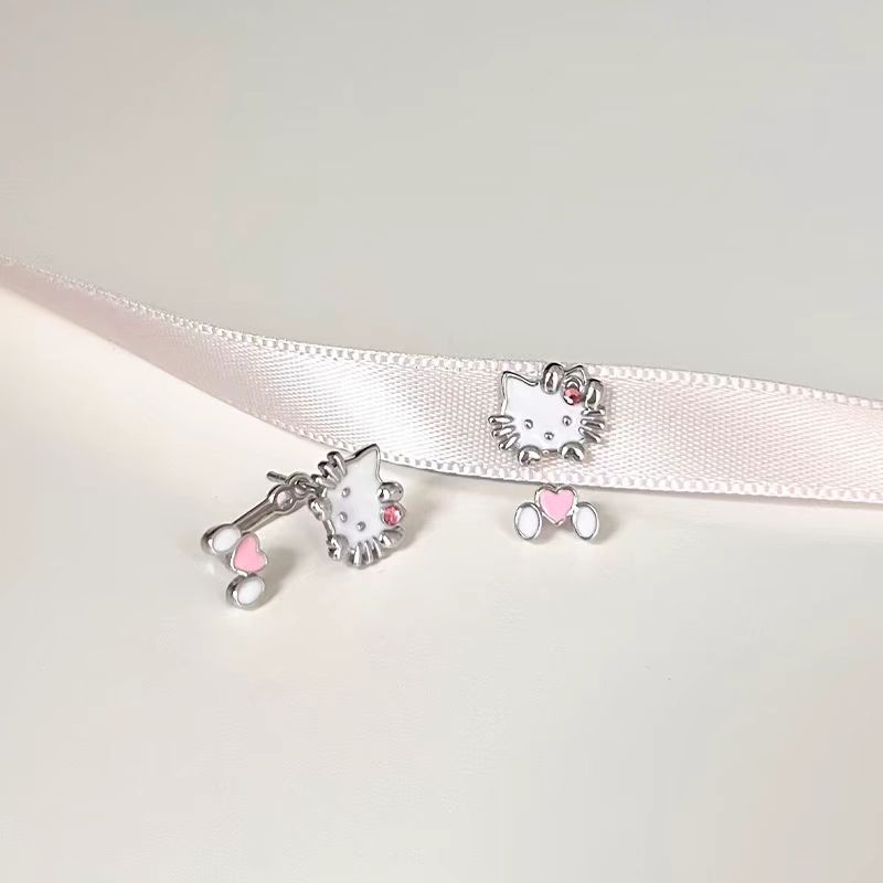 KT猫の後掛け式の2つのピアスの女性の漫画のデザインは軽くて豪華で高級感があります。