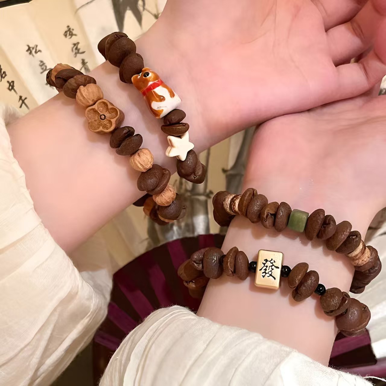 新中国式コーヒー豆猫爪ビーズブレスレットレトロ小衆デザイン手串古風個性百合手飾り部品