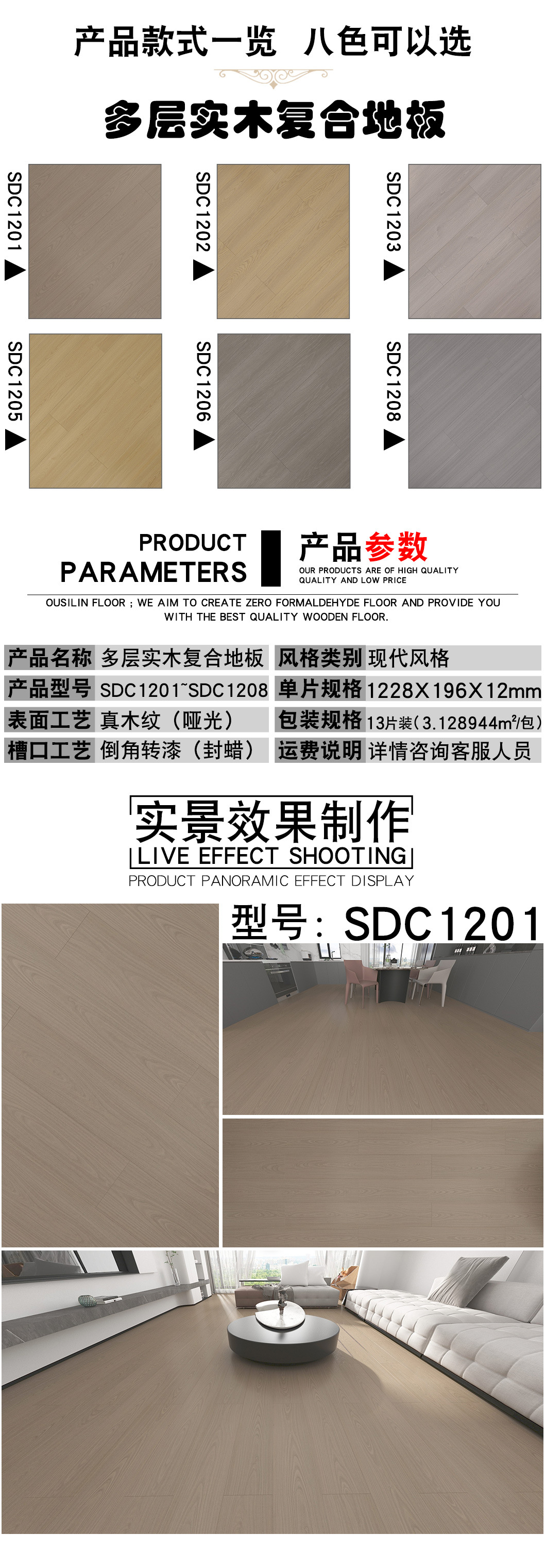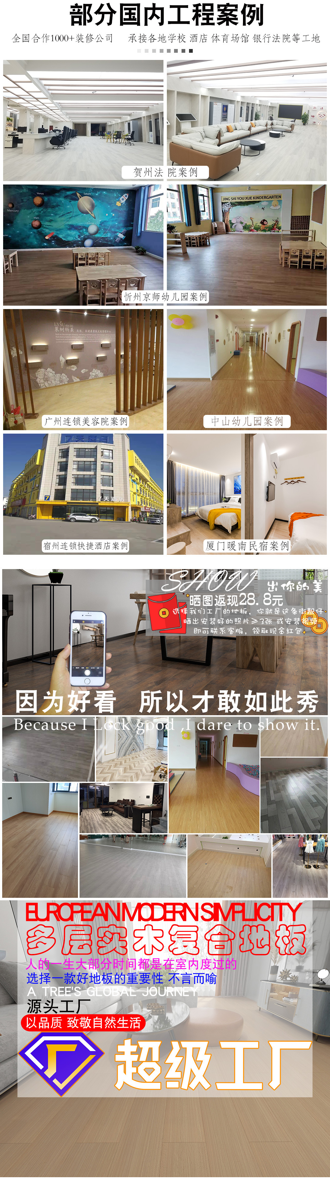 強化複合床12mm精装房ホテル工事用ヨーロッパ式現代シンプルロック耐摩耗金刚板