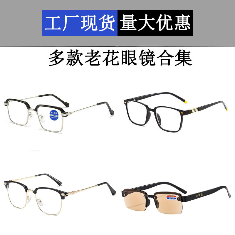 感光変色老眼鏡経典個性黒眉防ブルーレイ読書眼鏡中高年老眼鏡卸売り