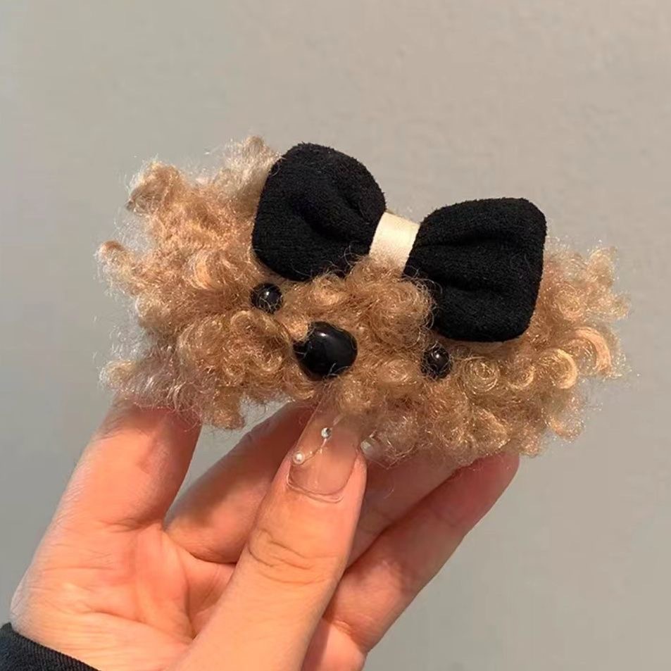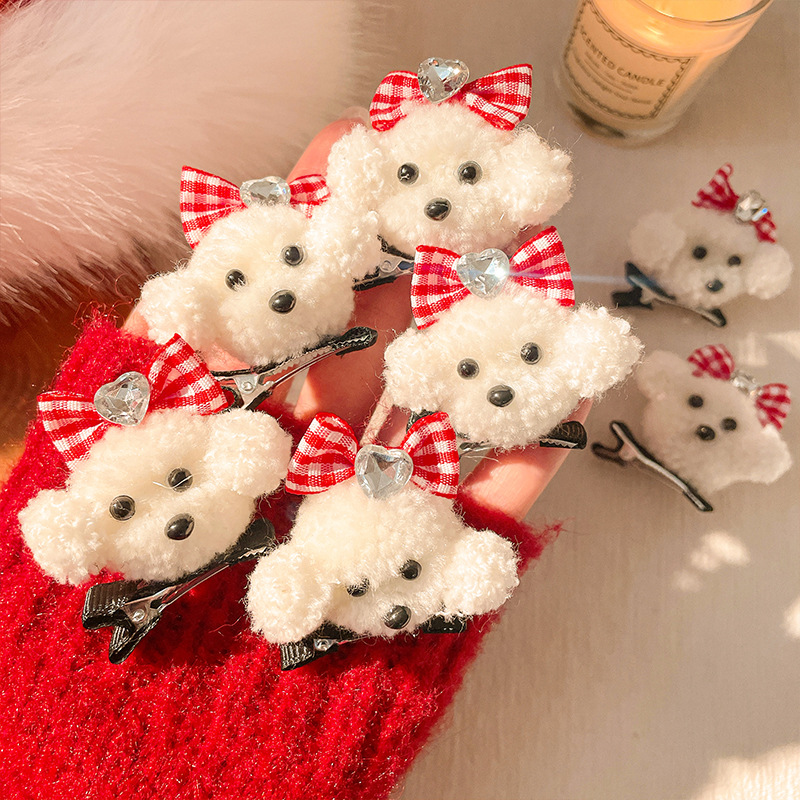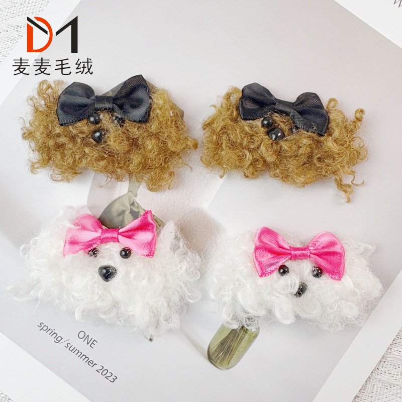 秋冬のかわいいテディ犬のぬいぐるみbbクリップの蝶結びのヘアピン