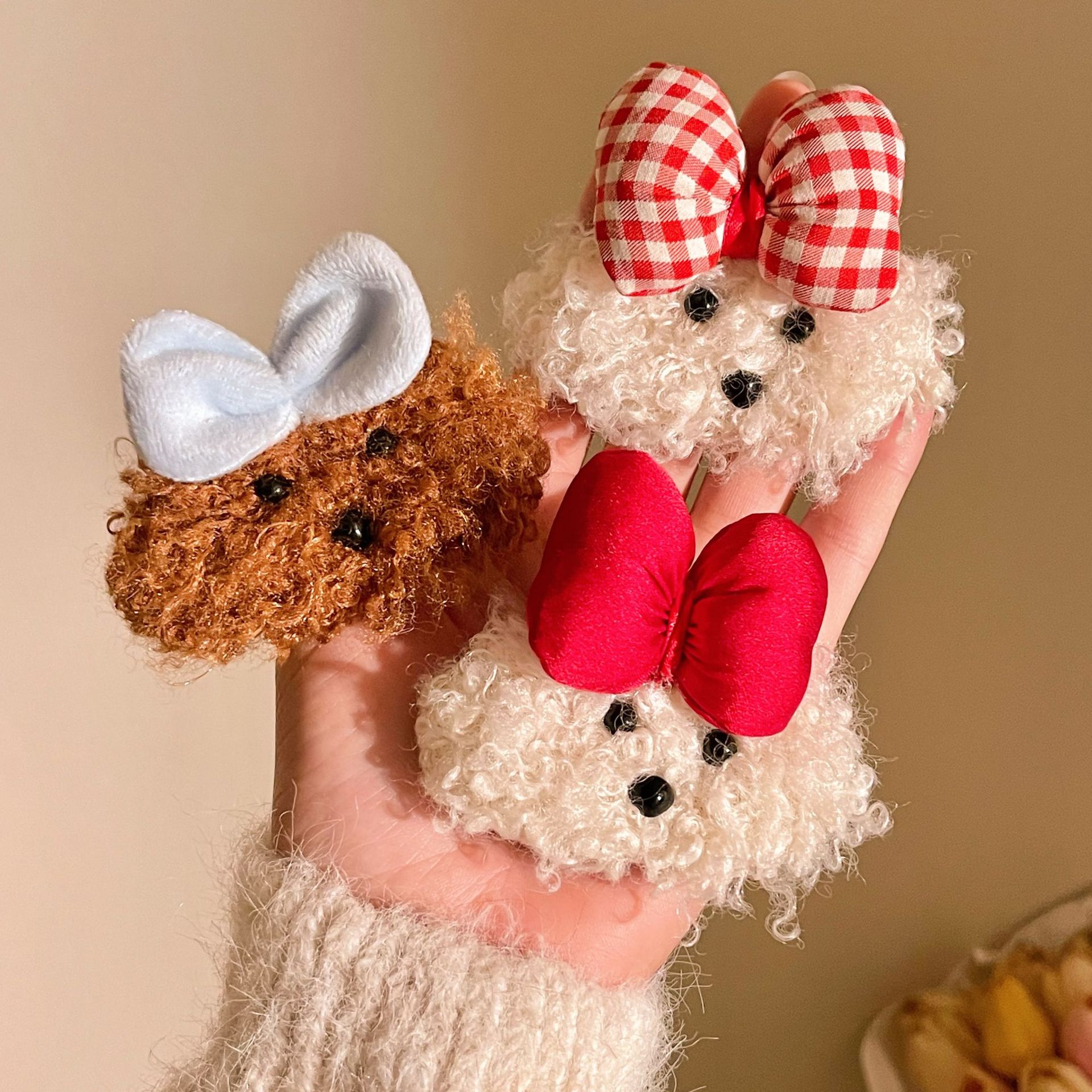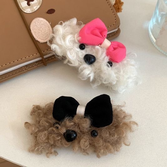 秋冬のぬいぐるみの蝶結びの子犬のヘアピンが可愛いです。