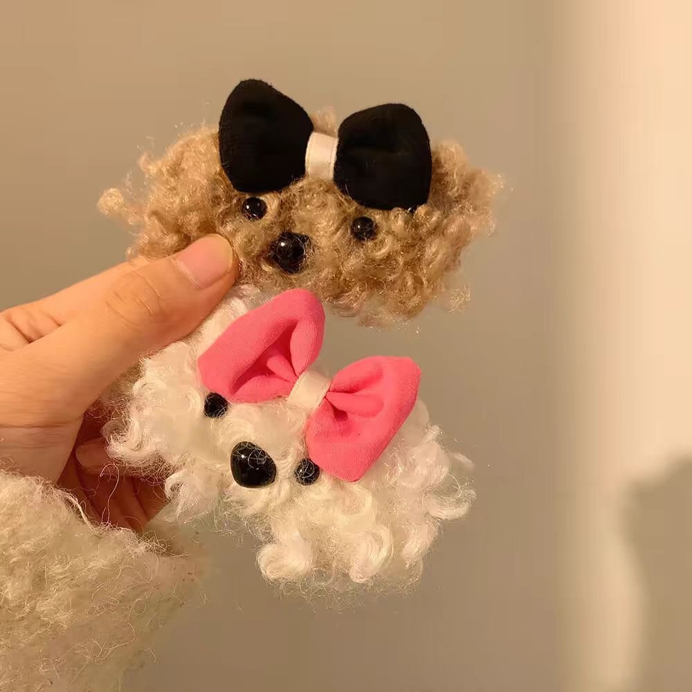 かわいいぬいぐるみの蝶結びの子犬のヘアピンの女性の冬の前髪のサイドbbクリップの毛のヘアピンの子供の髪飾り
