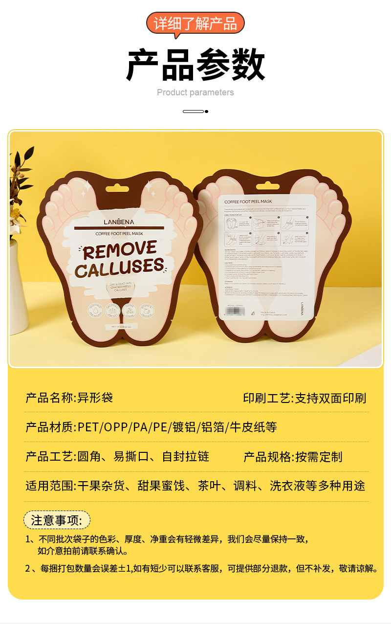 カスタマイズされた特殊な形状の食品包装袋、カラー印刷されたキャットフードとドッグフードのフットマスクバッグ、アルミホイルバッグ、ドライフルーツスナック、自立型ジップロックバッグ