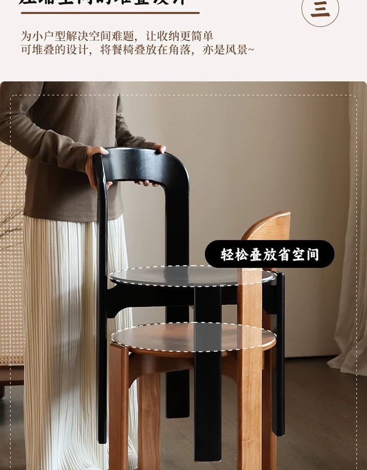 中古风黑色胡桃实木餐桌椅法式复古设计家具家用梳妆靠背圆形凳子