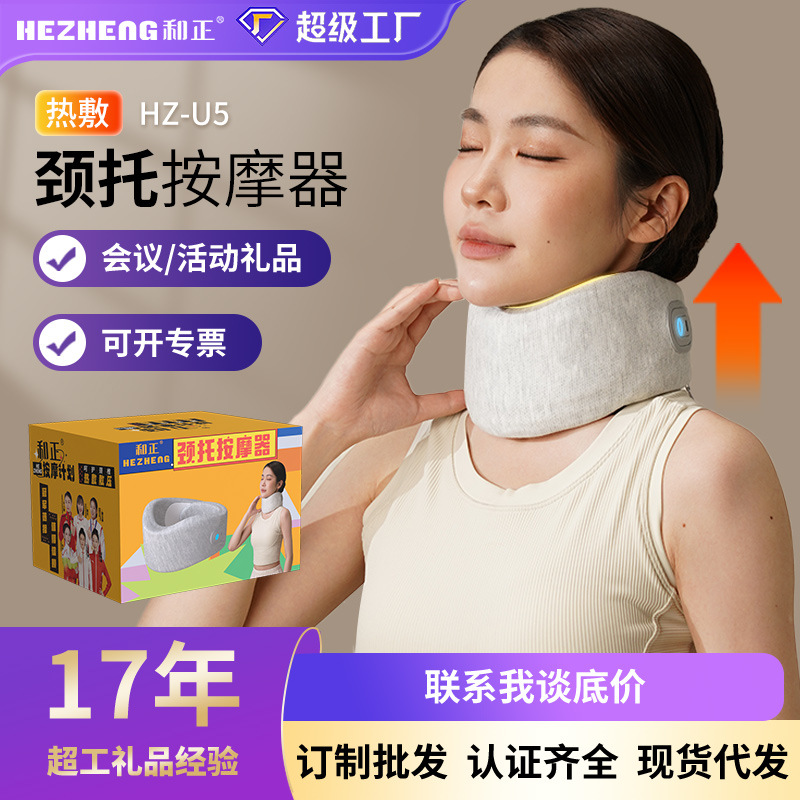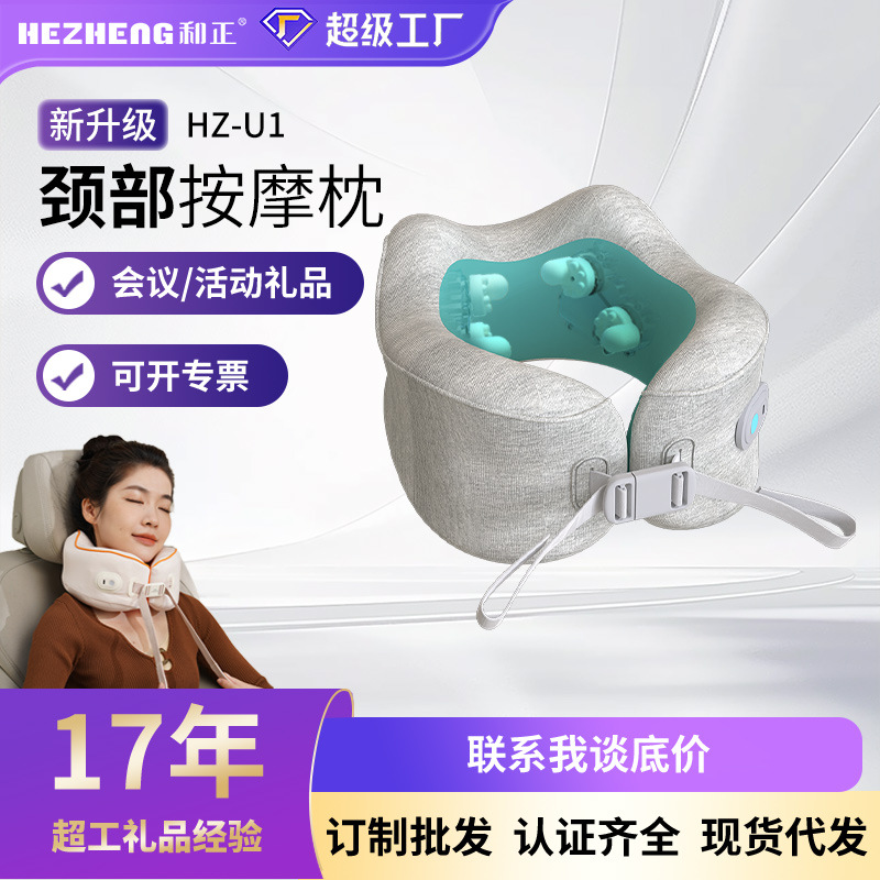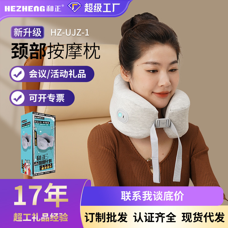 和正充电款颈椎自动揉捏按摩枕边充边用热敷颈部按摩仪年会礼品
