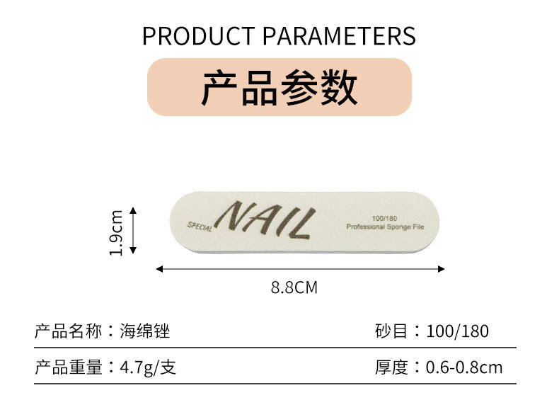 刻度水洗美甲搓条美甲工具不掉砂海绵抛耐用修型指甲锉双面砂条