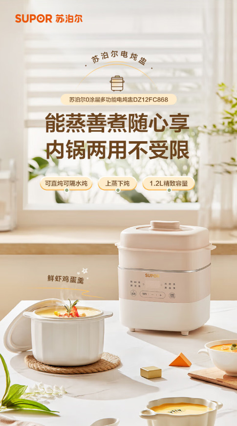 苏泊尔电炖锅宝宝辅食机陶瓷锅多功能智能婴儿迷你煮粥神器小炖盅