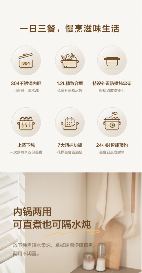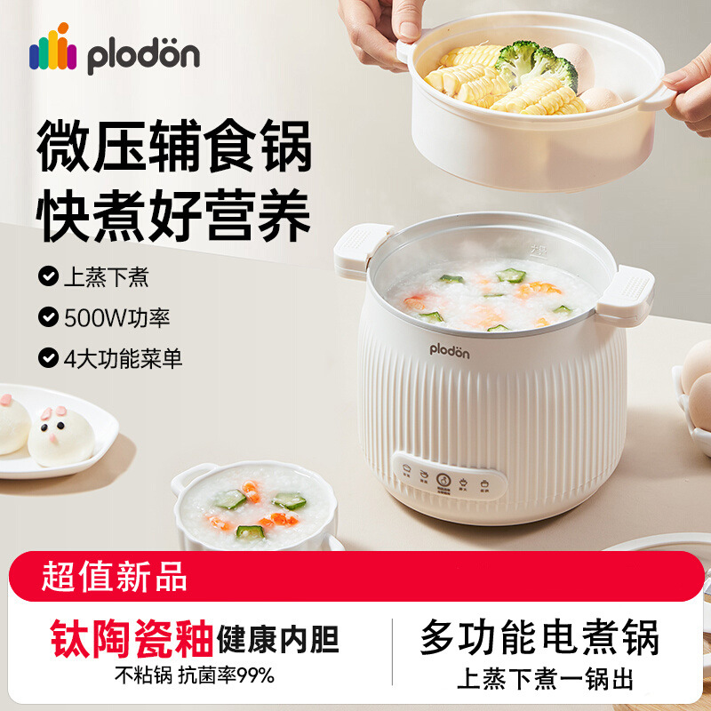 浦利顿婴儿微压款钛陶瓷电煮锅蒸煮多功能宝宝专用电饭煲辅食锅