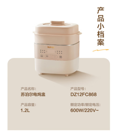 Supor 電気シチューポットベビーお粥補助食品ポット bb スープツバメの巣電気シチューポット家庭用セラミック DG15YC885