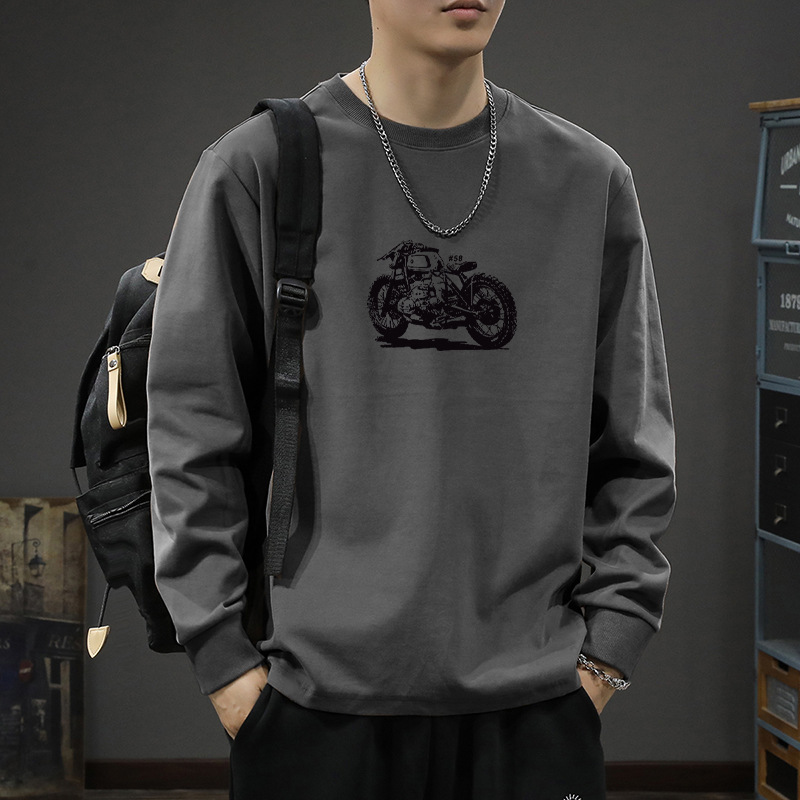 Tシャツ カジュアルで多用途なピュアコットン メンズ ゆったり トレンド ブランド 長袖 インナー 秋 大きいサイズ プリント インス 春秋 ヘビーウェイト