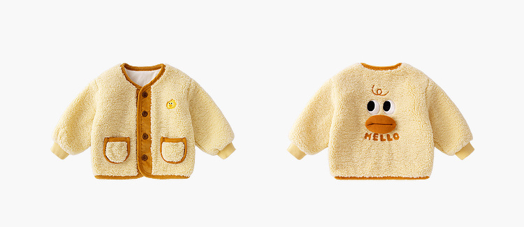 【かわいい漫画風】Dudu's kids オリーファーコート 秋冬男の子用厚手トップス 春女の子用冬服