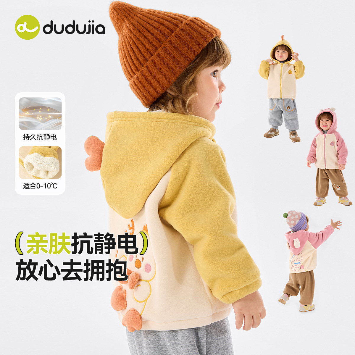 嘟嘟家童装宝宝加绒外套冬季女童衣服加厚冬装男童连帽上衣保暖潮