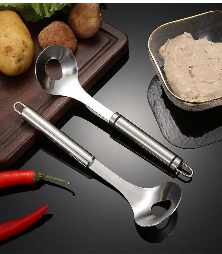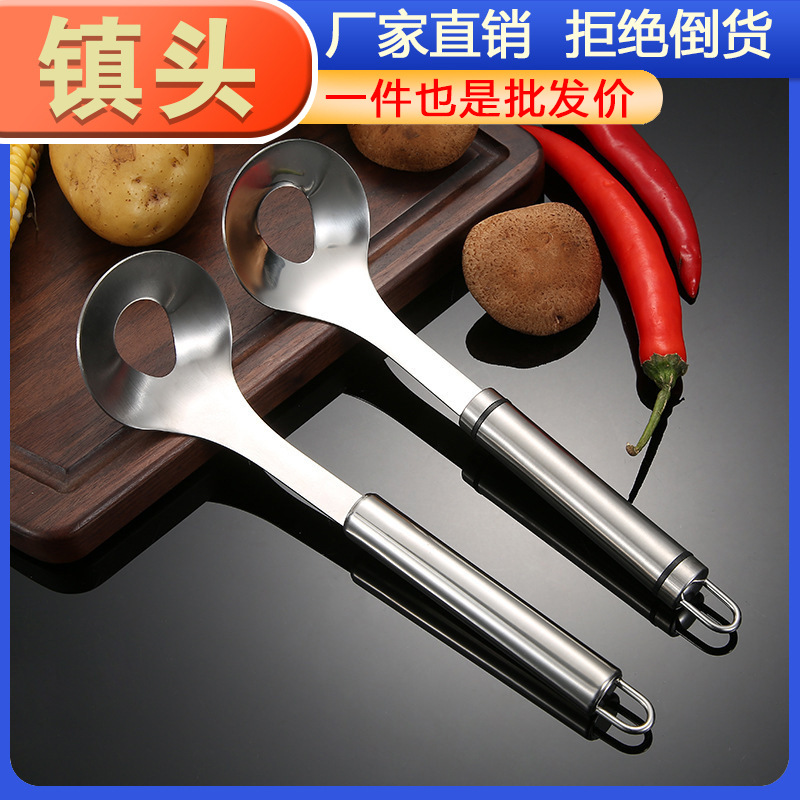 304ステンレス油漏れスプーン台所道具吊り式油抜きスプーンすくい油かす濾過網スプーン浮きスプーン