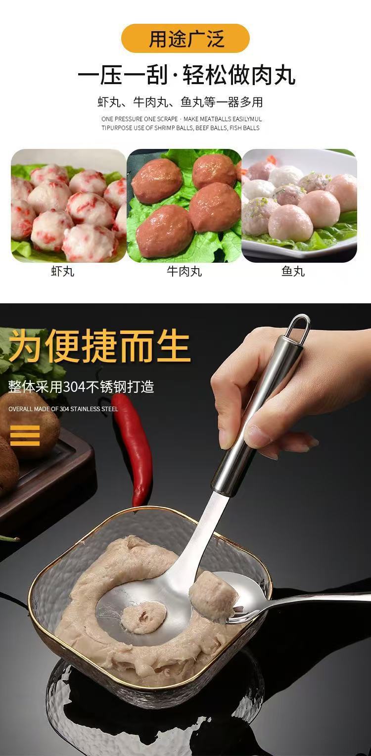ステンレス肉丸スプーンキッチン家庭用押し出し肉丸魚丸スプーン製作器押し出しエビ滑りスプーン神器