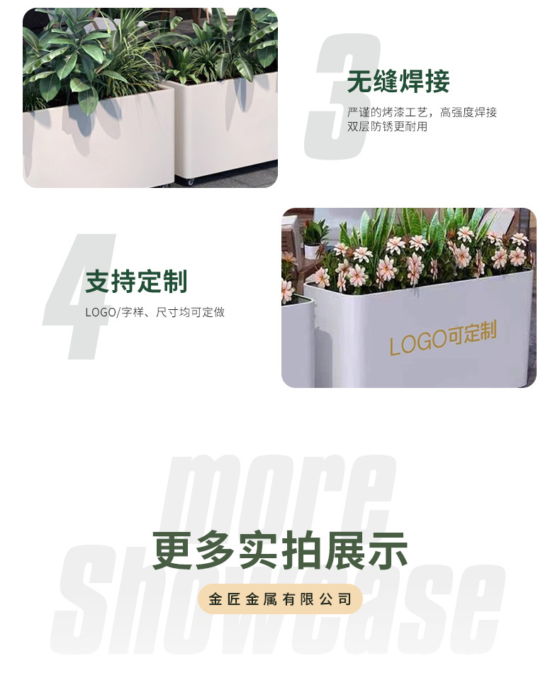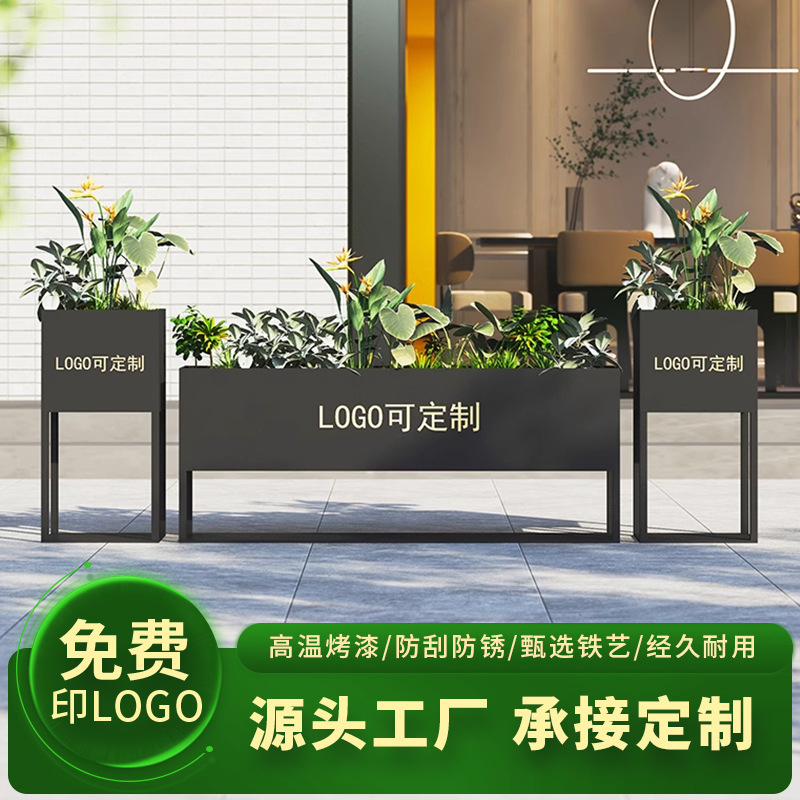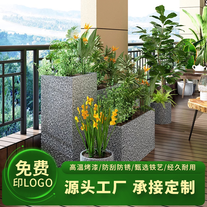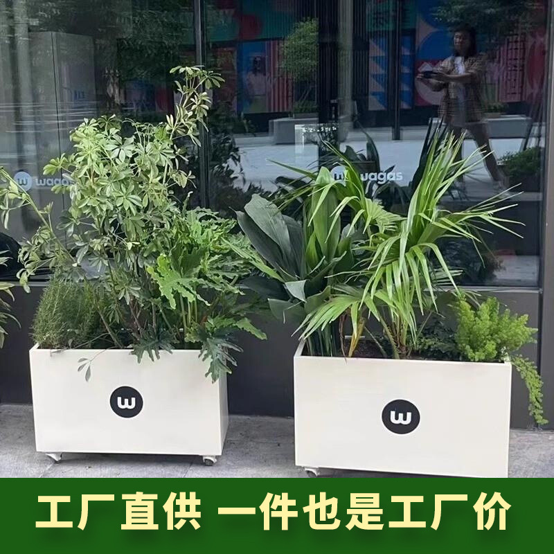 屋外鉄金属フラワーボックスストリート長方形植木鉢営業部広場花壇ステンレス鋼フラワーチャンネル小紅書