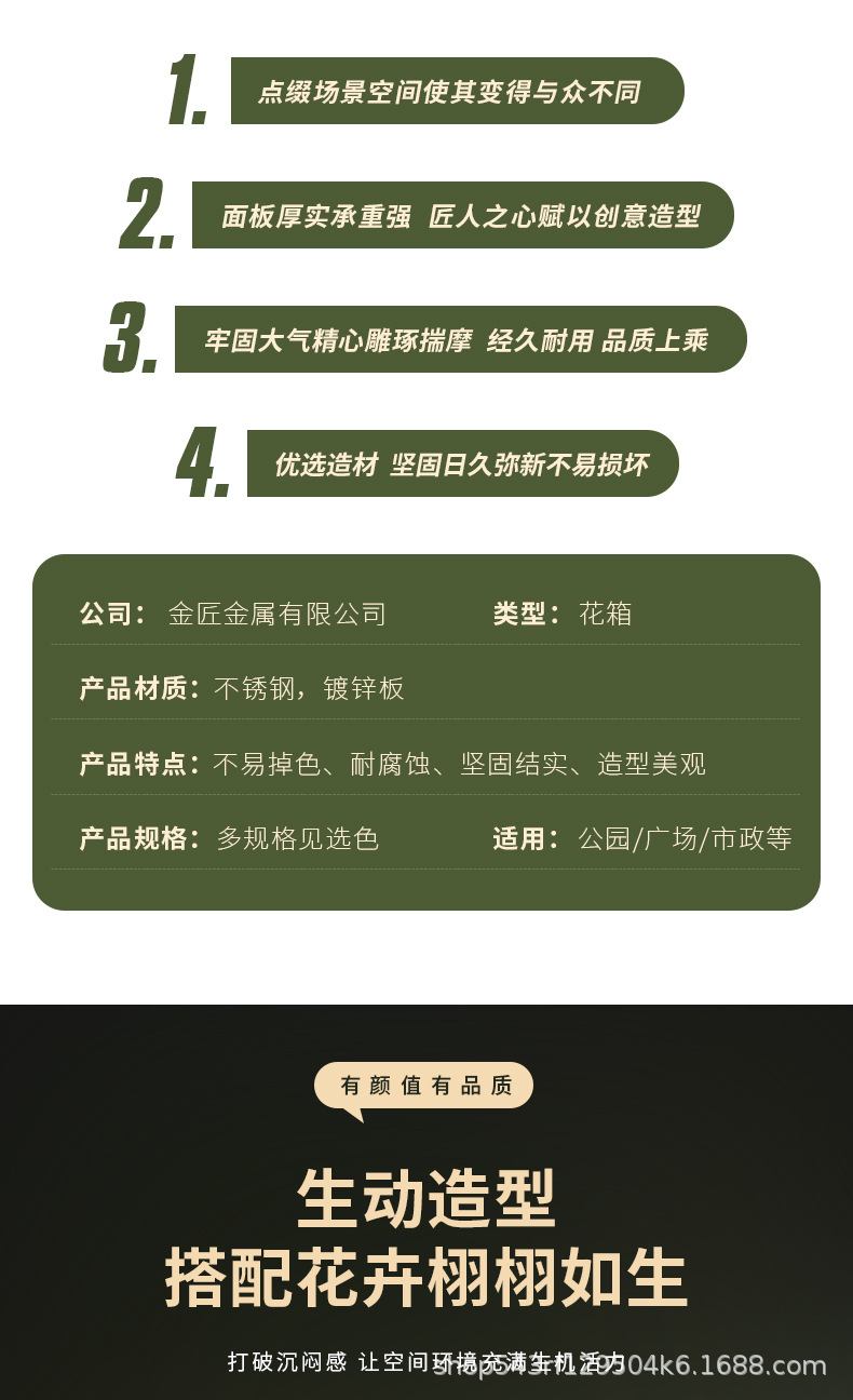 户外不锈钢铁艺花箱组合长方形商业街售楼部广场花坛市政围栏花槽