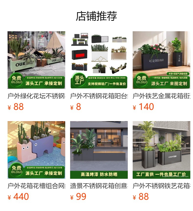 屋外ステンレス花箱鉄芸植木鉢棚仕切り花溝ミルクティー店花池服装店商業広場花壇