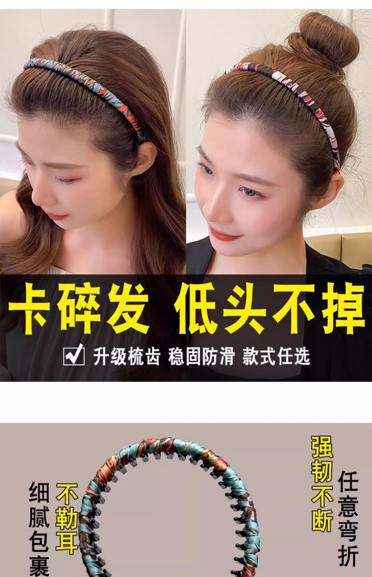 儿童带齿发箍女童碎发整理神器女孩可爱不伤发卡头饰防滑压发头箍