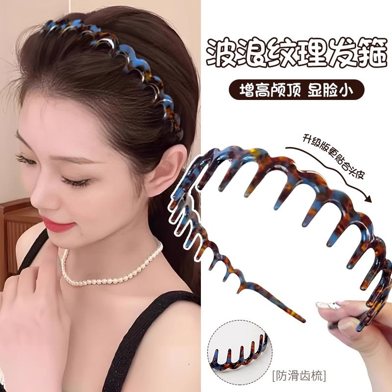 初夏醋酸大波浪齿梳发箍女高颅顶压发发捆头饰高级感蓬松反戴头箍