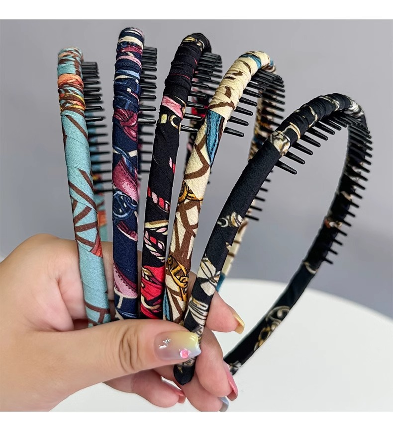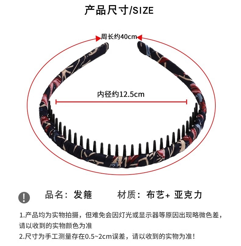 ネット赤歯車滑り止めヘアカード韓国版布芸ヘアバンド手作業布全包型歯付きヘアバンドシンプル