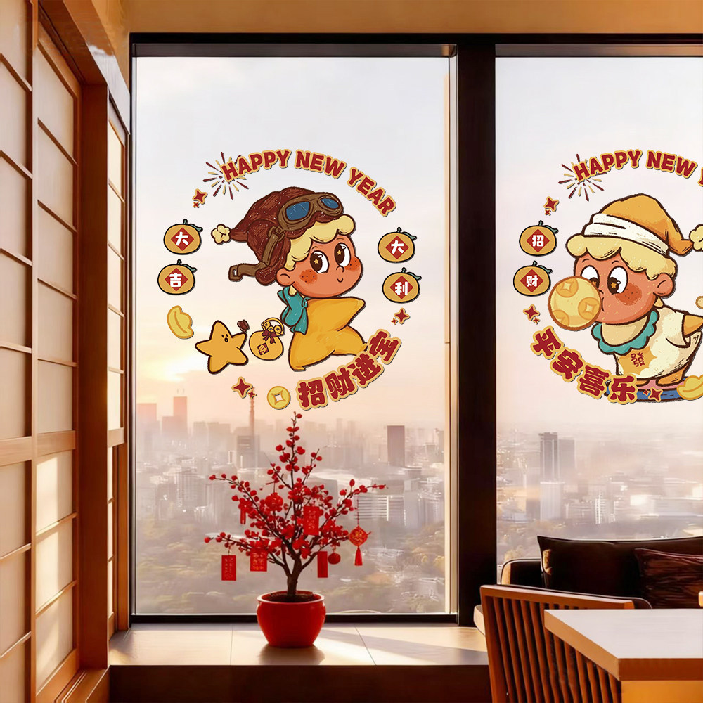 2026新年星星人门窗贴纸马年可爱窗花玻璃贴画春节装饰静电UV门贴
