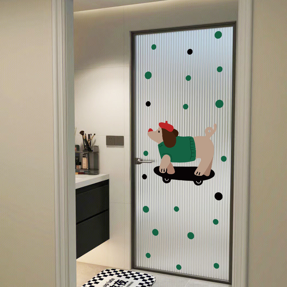 カラー波点アニメ子犬遮断ガラス扉シール衝突防止貼り絵家庭用キッチントイレ装飾貼り絵