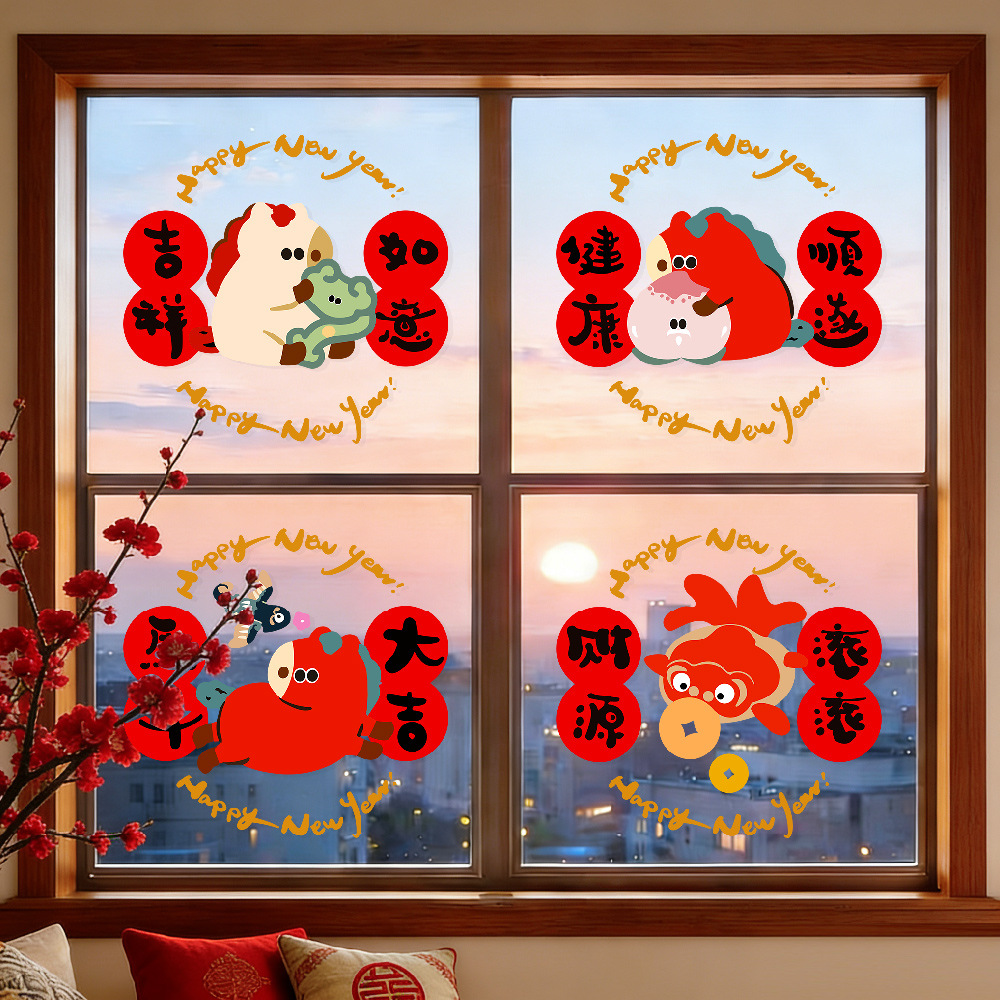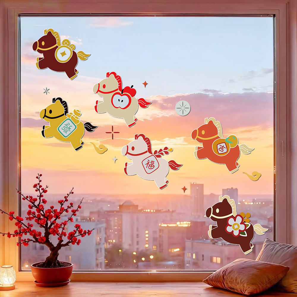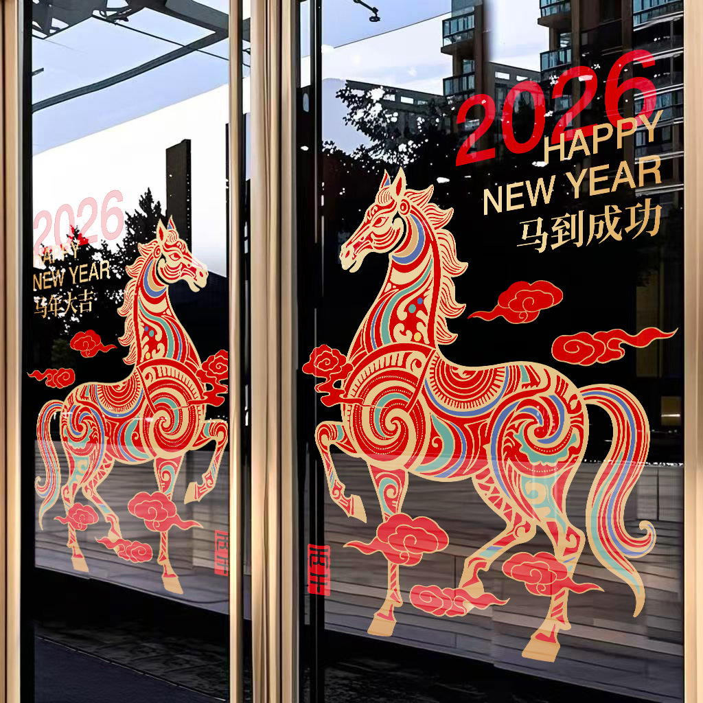 2026年馬年春節ステッカーUV窓ガラス新年装飾静電ステッカー門ステッカー窓花窓ステッカー