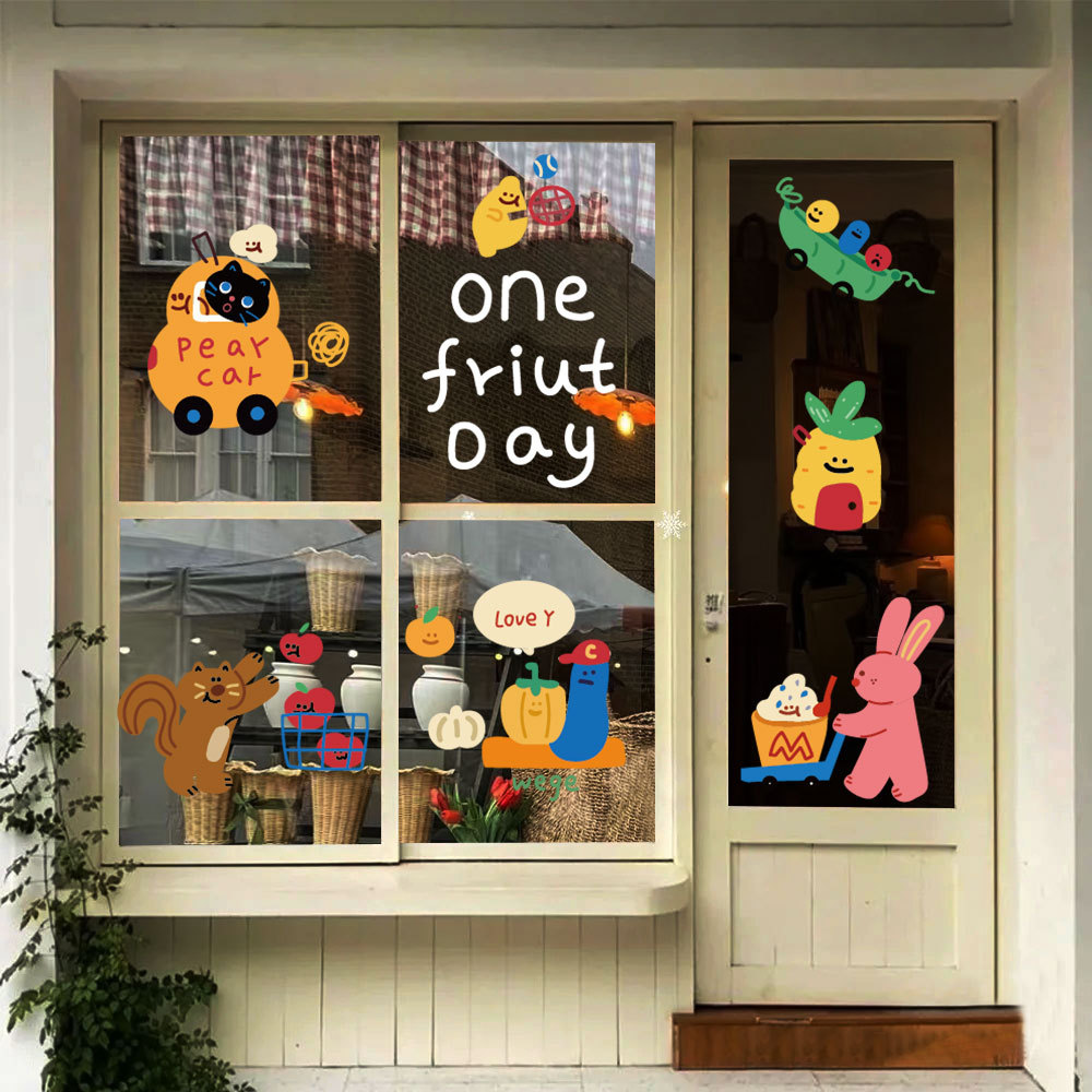 Ins風網紅かわいいアニメシール子供服スイーツ店ガラス扉貼りコーヒーミルクティー店装飾貼り絵